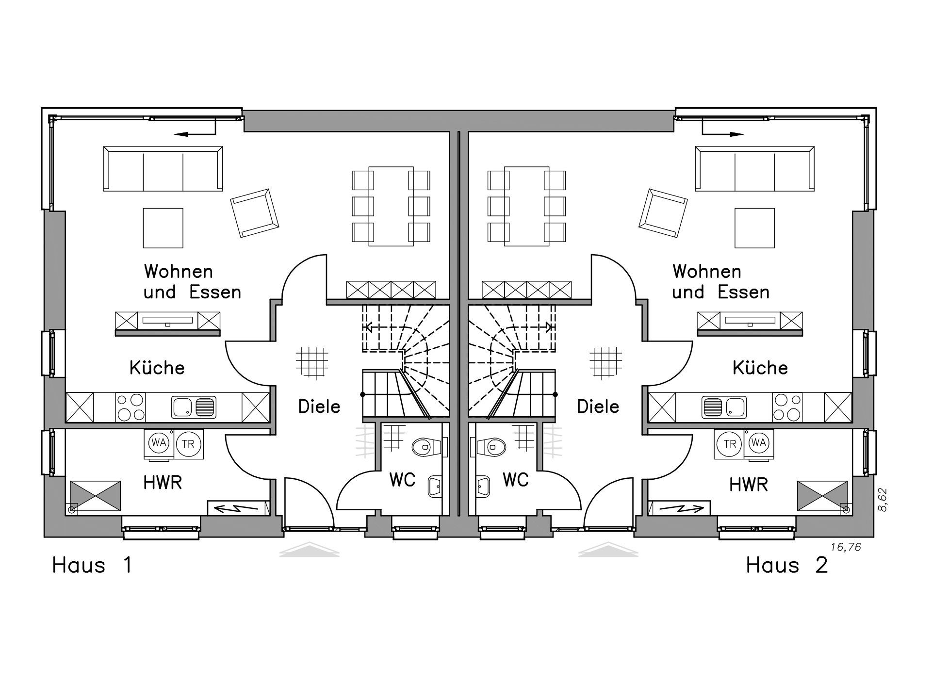 Bei ständig steigenden Grundstückspreisen ist eine Doppelhaushälfte eine Alternative, die sich rechnet. Und zwar ohne auf Wohn- und Platzkomfort zu verzichten. Die Baudirekt-Hausidee DH 110 zeigt, wie individuell auch das Wohnen "Wand an Wand" umgesetzt werden kann.