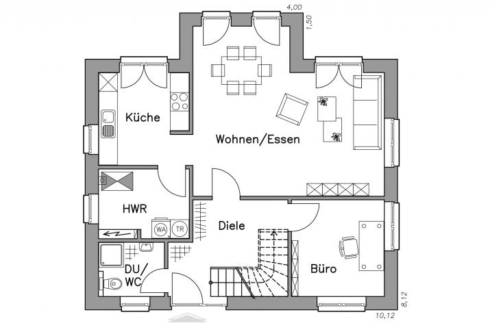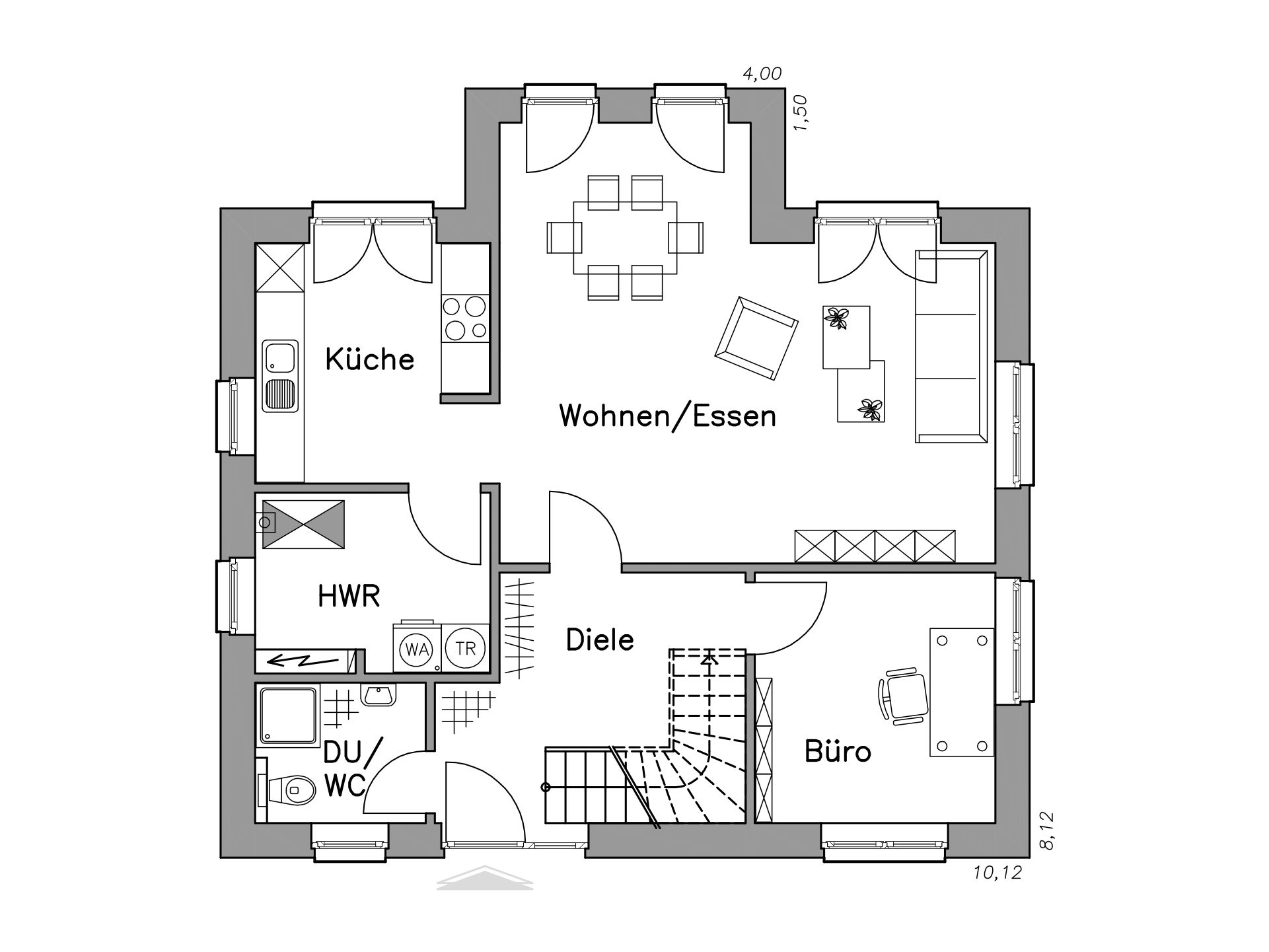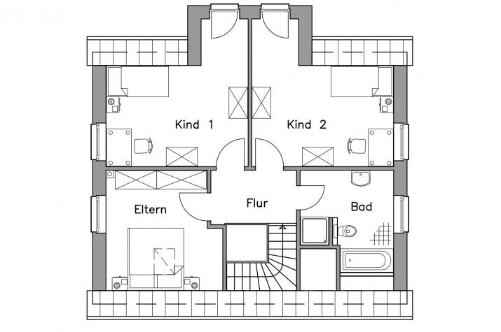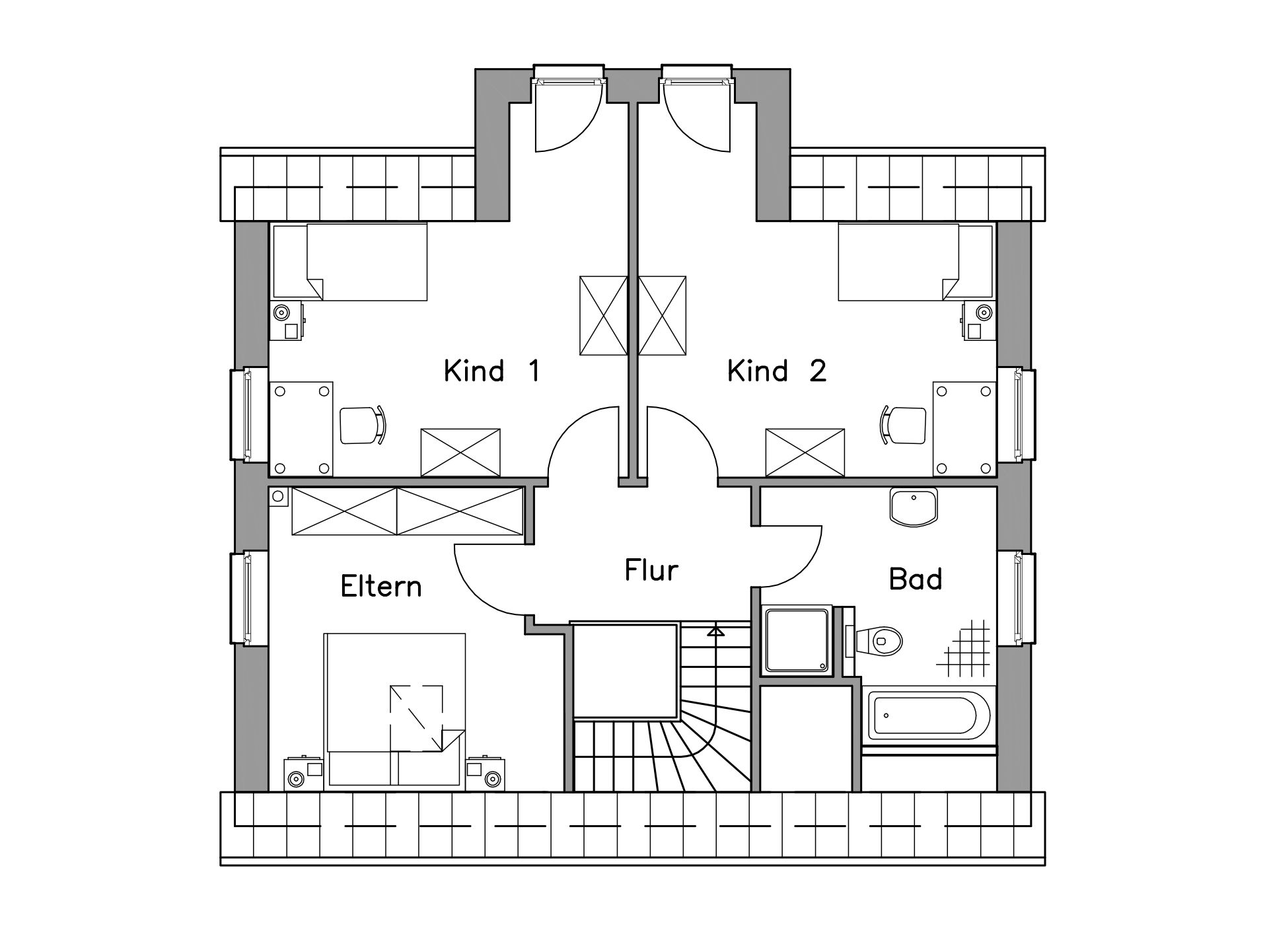 Die klare Gestaltung der Grundrisse und die durchdachte Raumfaufteilung machen die Hausidee EH 125 zu einem idealen Haus für junge Familien. Mögliche Erweiterungen wie Erker, Dachgauben etc. sowie vielfältige Alternativen in der äußeren Fassadengestaltung machen das EH 125 zu Ihrem höchst persönlichen Haus!