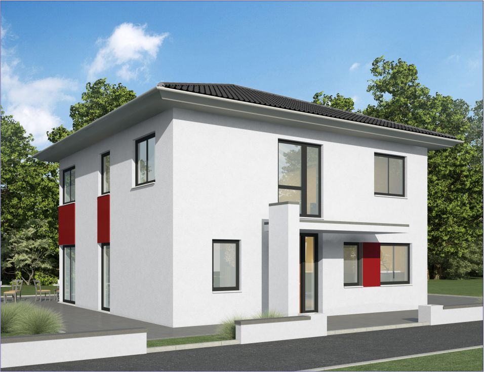 Wer im Obergeschoss keinesfalls durch Dachschrägen behindert werden möchte, für den ist die Hausidee SV 140 genau das Richtige. Das hat zur Folge, dass die Grundfläche des Hauses optimal ausgenutzt werden kann und auch auf kleine Grundstücke passt. Die Farbe der Fassade und die verwendeten Materialien können dieses Haus in eine moderne Stadtvilla oder in ein verträumtes Domizil im Toscana-Stil verwandeln. Ganz nach Ihrem höchst persönlichen Geschmack.