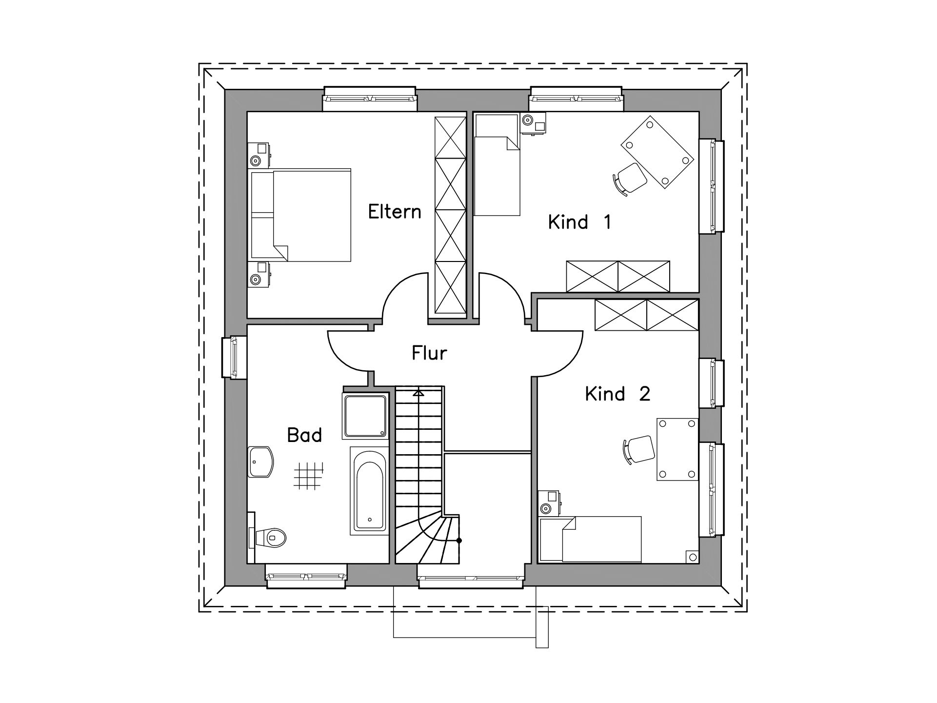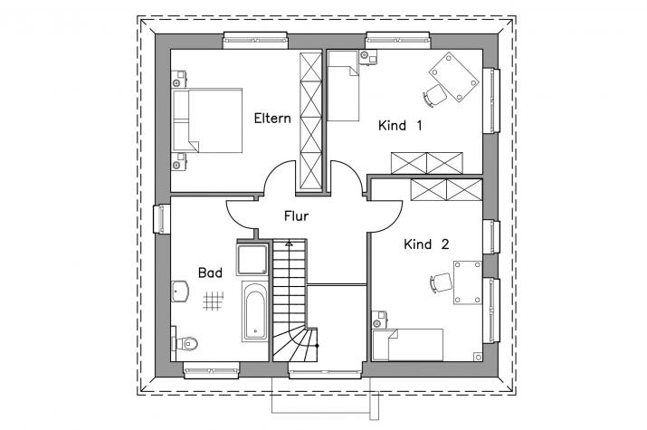 • Massiv-Hausidee SV 140 T - OG-Grundriss SV 140 T
