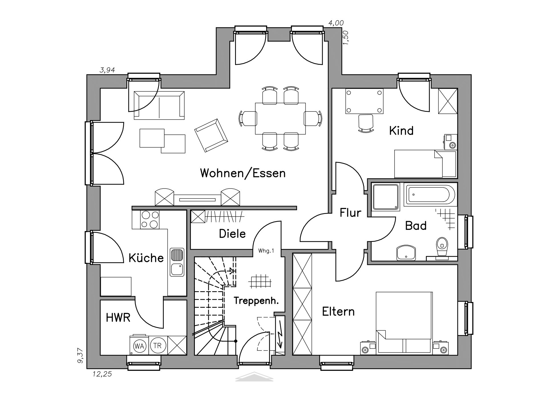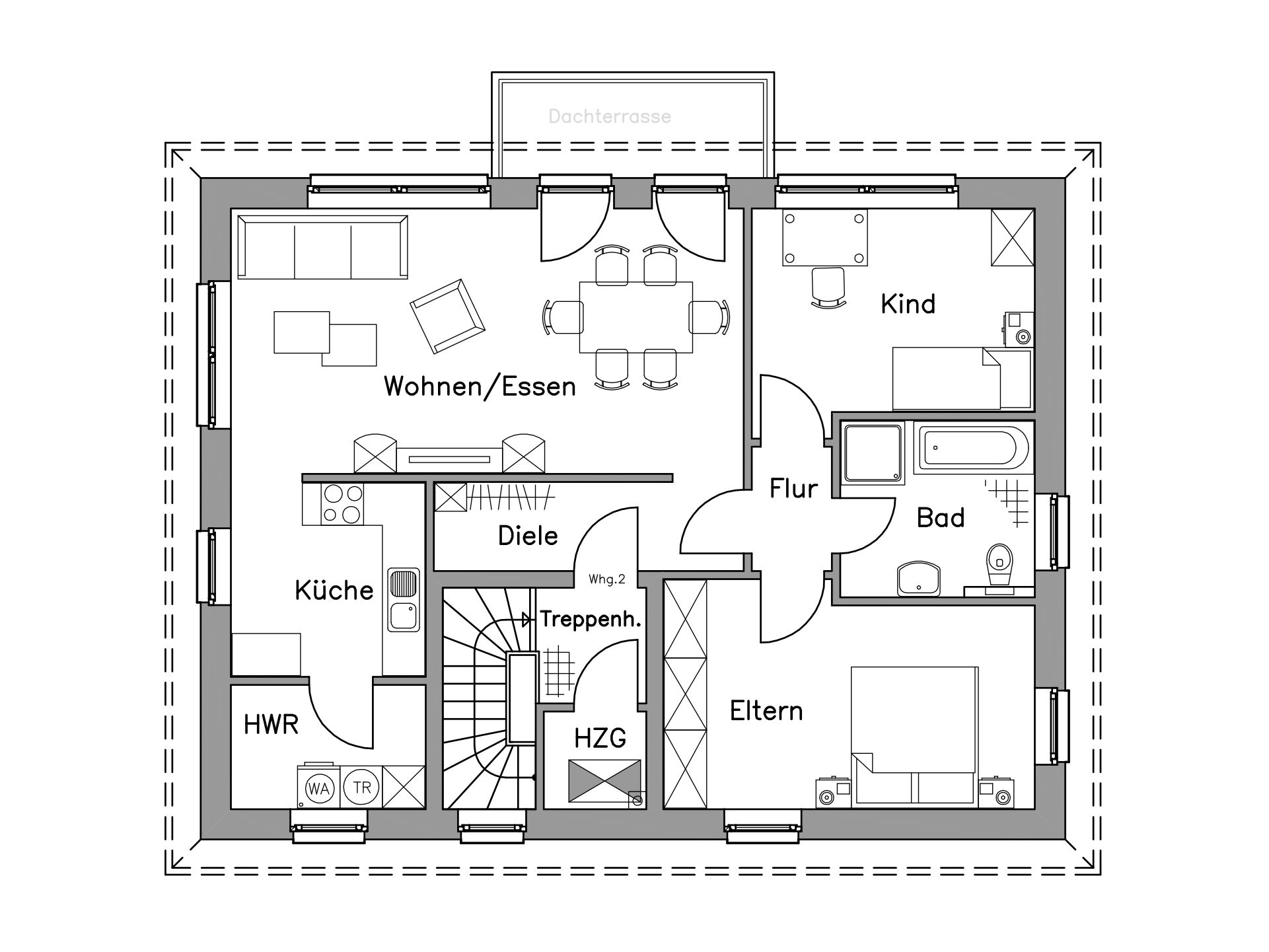 Massiv-Hausidee ZH 185 M - EG-Grundriss ZH 185 M1 / 2