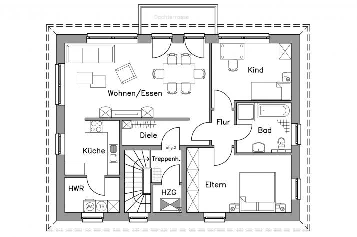 Ob Großfamilie, mehrere Generationen oder nette Mieter, in der Hausidee ZH 185 finden alle ausreichend Platz - unter einem Dach. Durch die beiden gleichwertigen Grundrisse mit insgesamt rund 185 m² Wohngrundfläche wird das Wohnen im Erd- wie auch im Dachgeschoss zu etwas ganz Besonderem.