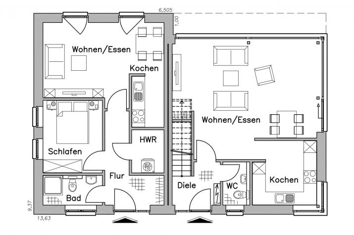 Ob Großfamilie, mehrere Generationen oder nette Mieter, in der Hausidee ZH 200 finden alle ausreichend Platz - unter einem Dach. Durch die beiden gleichwertigen Grundrisse mit insgesamt rund 200 m² Wohngrundfläche wird das Wohnen im Erd- wie auch im Dachgeschoss zu etwas ganz Besonderem.