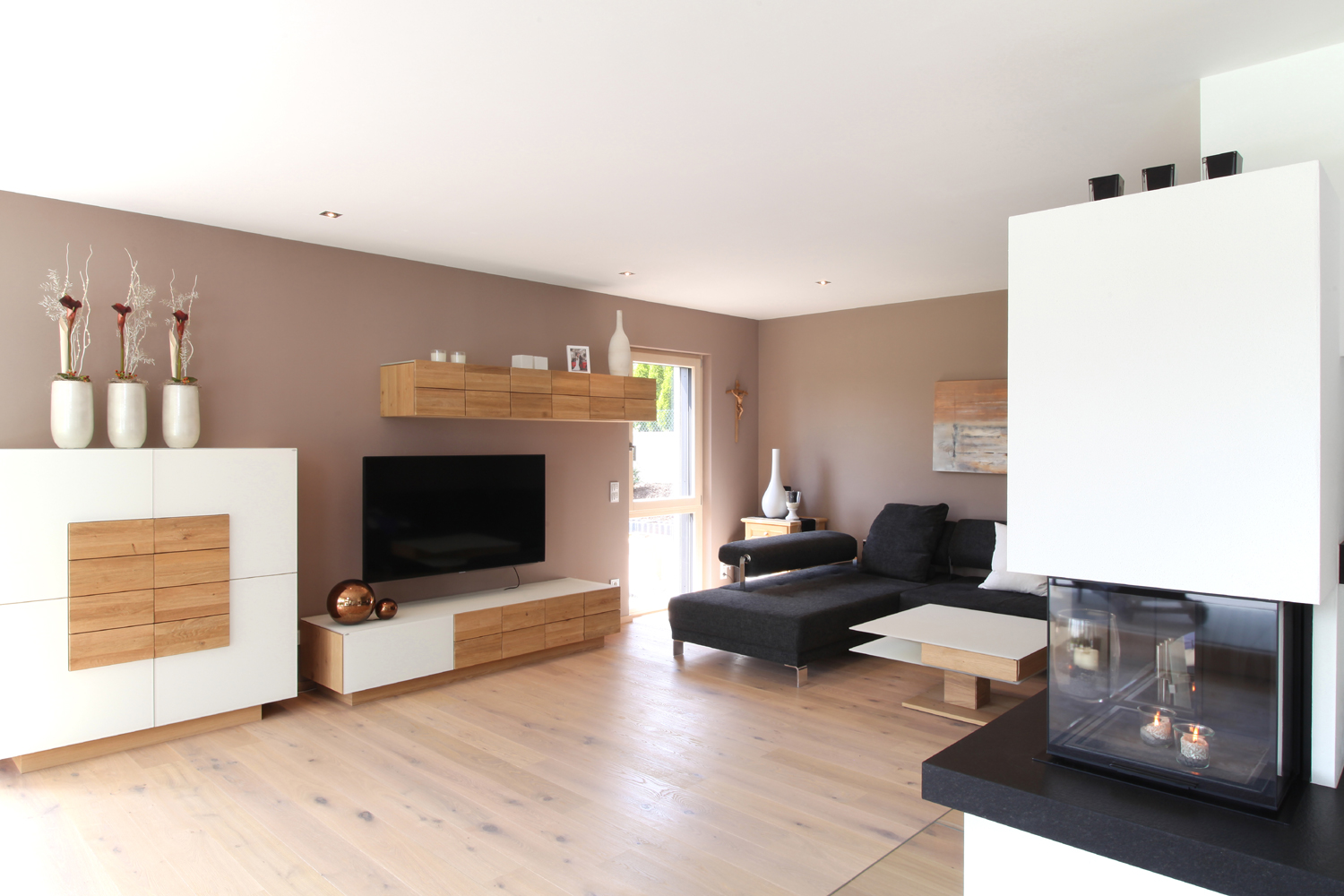 Ein Ehepaar wohnte mit ihren zwei Kindern jahrzehntelang über ihrem Betrieb, einer alteingesessenen Schreinerei im Norden von Lindau. Selbst und ständig, so war das Leben der Besitzer. Morgens ab sechs Uhr rollten die ersten Lastwagen auf den Hof und abends kam häufig noch ein Kunde vorbei, um schnell etwas reparieren zu lassen. „Wohnen und arbeiten unter einem Dach kann praktisch sein, aber meine Frau und ich sind über 50 Jahre alt, da war es unser größter Wunsch, dass etwas mehr Ruhe einkehrt und der Wohnkomfort modernen Bedürfnissen entspricht“, erklärt der Bauherr. Weil seine Firma eng mit dem Allgäuer Ökohaus-Pionier Baufritz verbunden ist, einem Vorreiter im klimaneutralen und nachhaltigen Hausbau, lag es nahe, dass sich das Paar für das renommierte Unternehmen aus Erkheim entscheiden würde.
