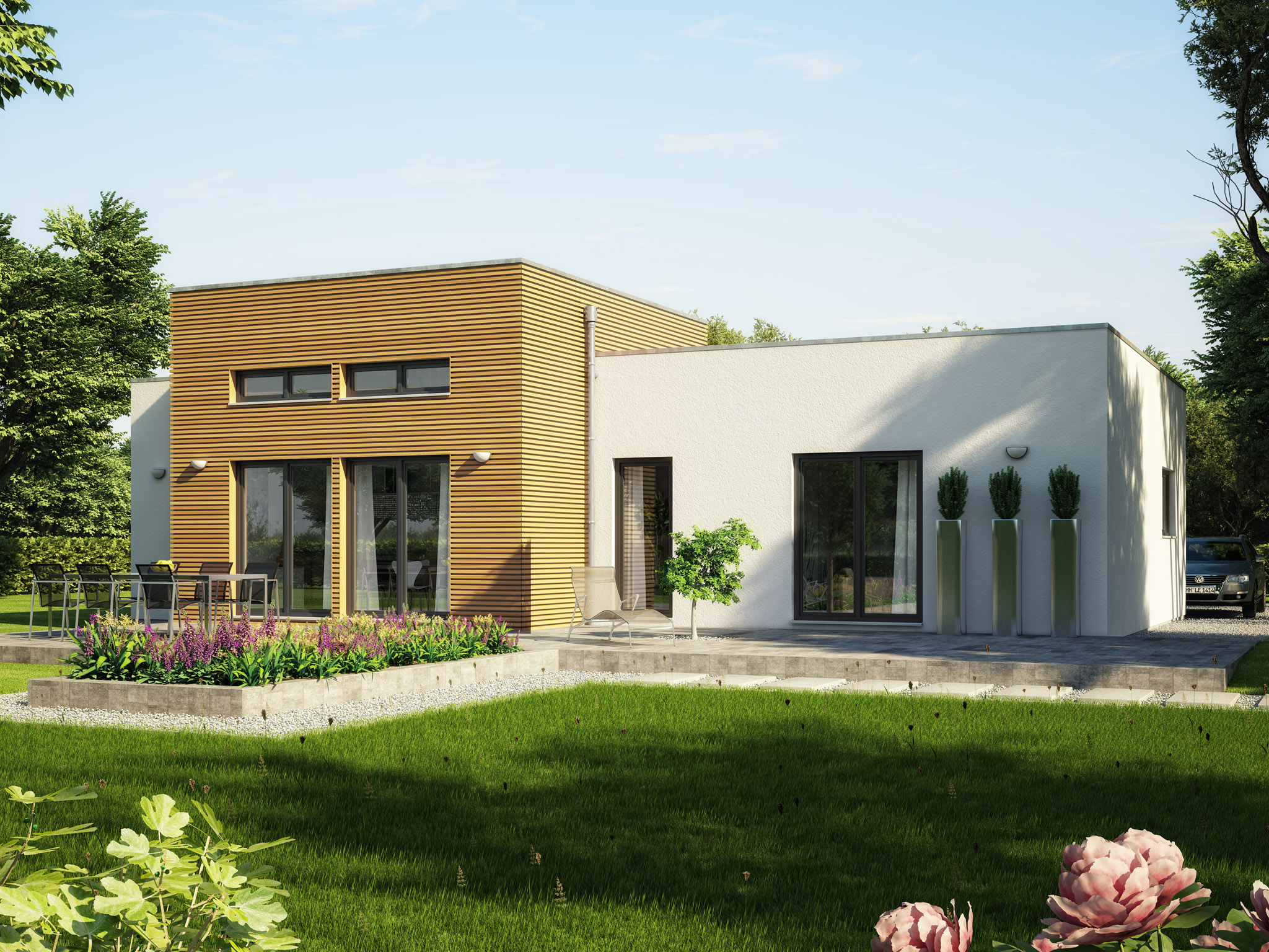 Das AMBIENCE 111 überzeugt sowohl mit seinem wohldurchdachten Grundrisskonzept als auch mit überaus ansprechender Architektur. Als vollwertiges Eigenheim für zwei bis drei Personen glänzt dieser Bungalow mit einem offenen, lichtdurchfluteten Wohnbereich, einer praktischen Diele mit Garderobe, einem zusätzlichen Arbeitszimmer sowie einem separaten Gäste- oder Kinderzimmer mit eigenem Dusch-WC. Durch tolle Erkerlösungen und diverse Architektur-Bauteile werden ganz nach Bedarf noch mehr Wohnraum und eine einladende Terrassensituationen geschaffen.