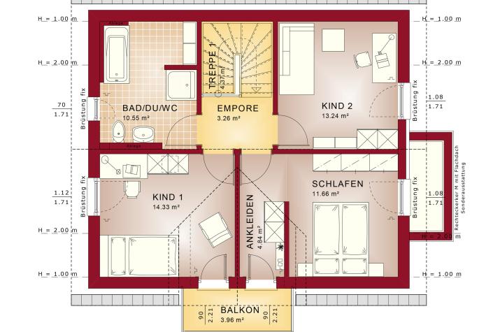 Zwerchgiebel Satteldach mit Rechteck-Erker M mit Balkon, Rechteck-Erker M mit Flachdach