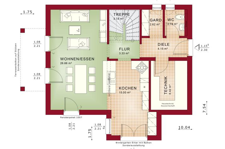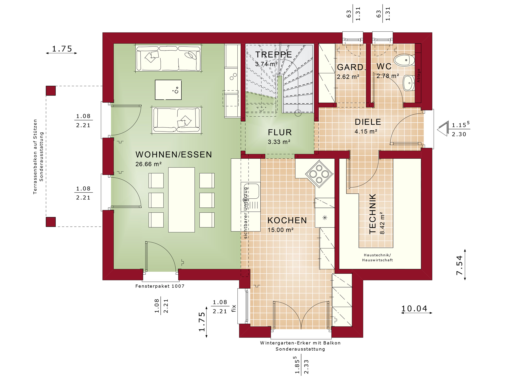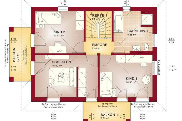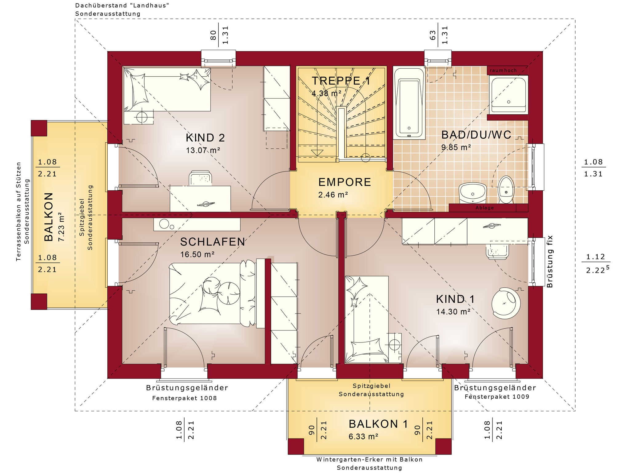 Terrassenbalkon, Wintergarten-Erker mit Balkon, zwei Spitzgiebel