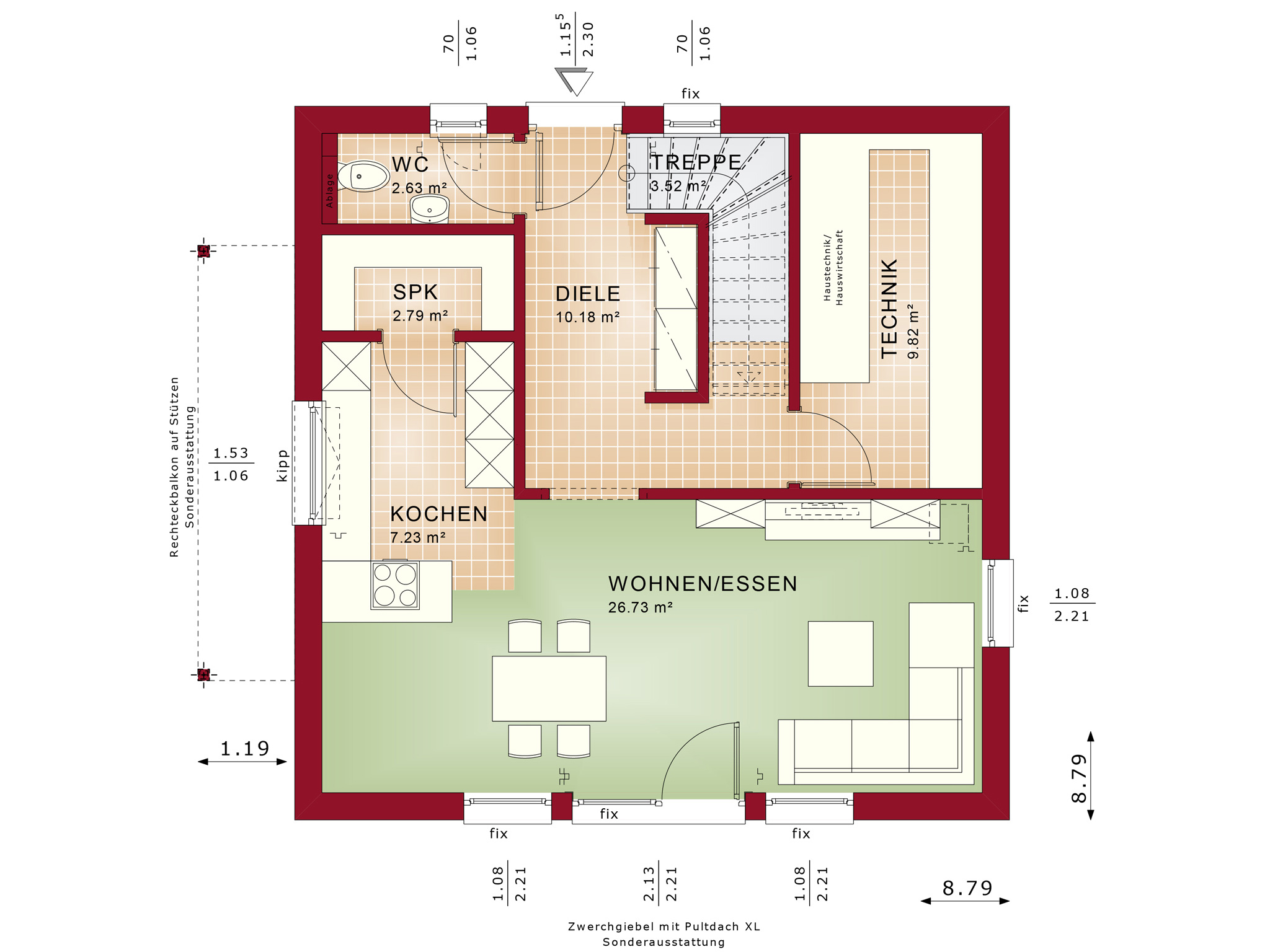 Einfach chic! Das EVOLUTION 124 verspricht schon auf den ersten Blick modernes Wohnen mit großen Fensterflächen und vielen schicken Details. Dank verschiedener Dachformen (Satteldach mit 25° oder 38° Dachneigung, Walm- oder Flachdach) lassen sich zahlreiche vollkommen unterschiedliche Häuser entwickeln. Sie entscheiden mittels attraktiver Architektur-Bauteile und den vielen Möglichkeiten der Fassadengestaltung, ob Ihr individuelles EVOLUTION 124 ein modernes oder eher ein klassisches Gesicht bekommt. Kurz gesagt: Wir bauen Ihnen Ihr einzigartiges EVOLUTION 124 genau so wie Sie es sich wünschen!