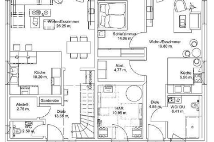 Dieses einzigartige Zuhause ist ein Meisterwerk, das Funktionalität und Eleganz perfekt kombiniert. Das klassische Satteldach verleiht dem Gebäude eine klare, ästhetische Linie, während die imposante Größe von 237m2 viel Wohnraum in zwei Wohnungen unterschiedlicher Größe bietet. Separate Eingänge zu beiden Wohnungen und ein durchdachter Grundriss schaffen ein vielseitiges Zuhause. Das größere Apartment liegt auf zwei Ebenen und bietet großzügigen Raum für eine Familie mit Kindern, während das kleinere ideal für Paare oder Großeltern konzipiert ist. Zum HWR gibt es einen separaten Außeneingang, was beide Apartments voneinander vollkommen unabhängig macht.