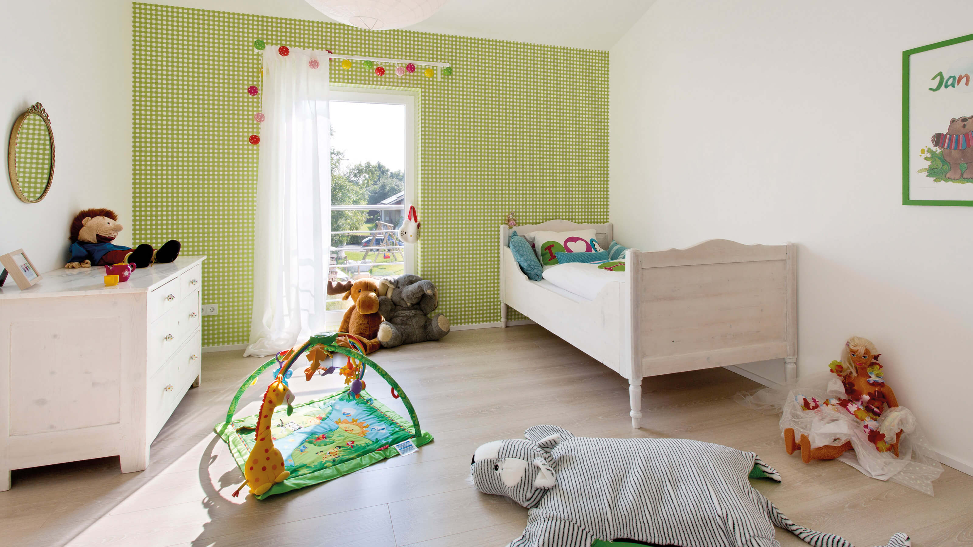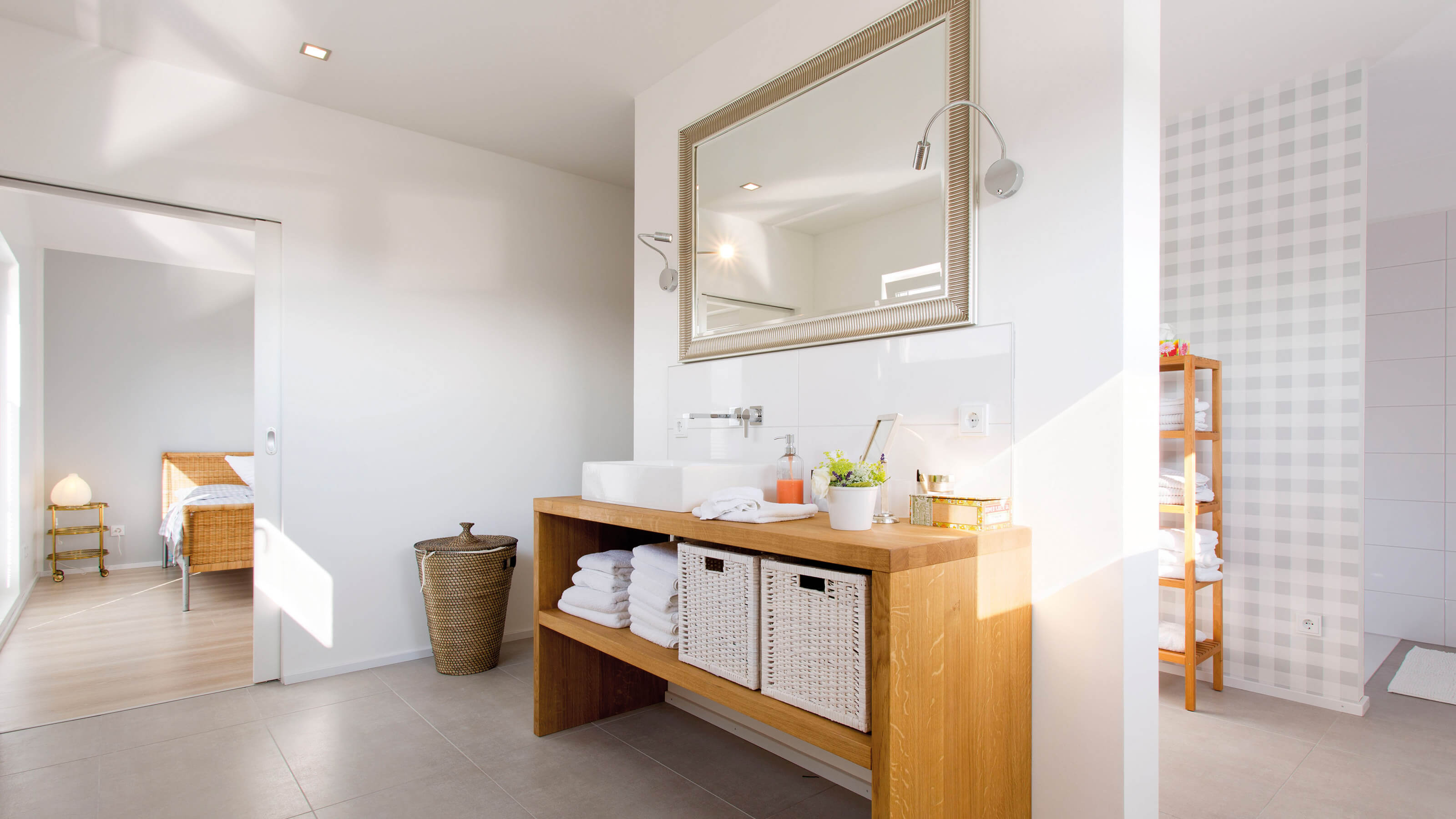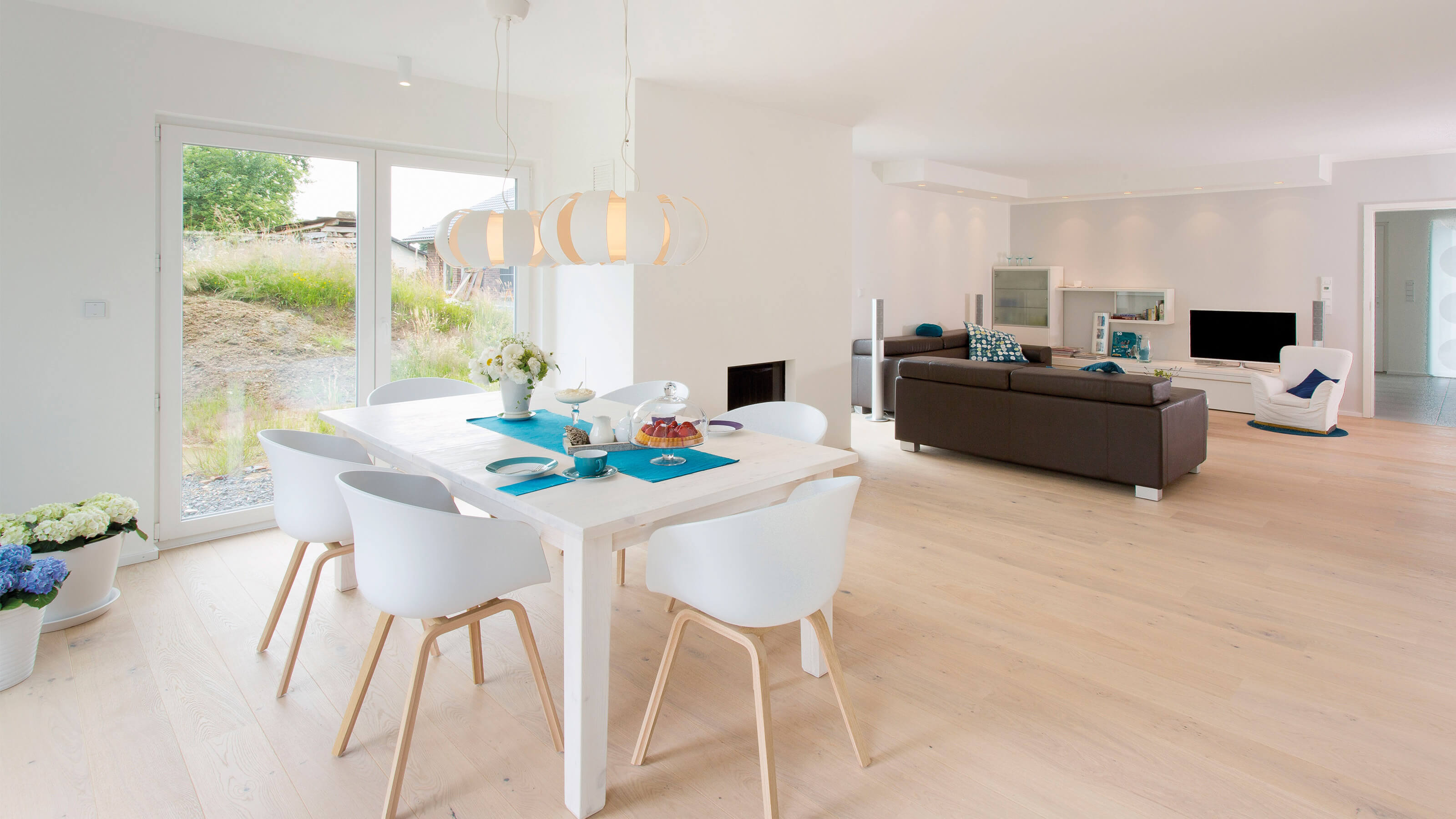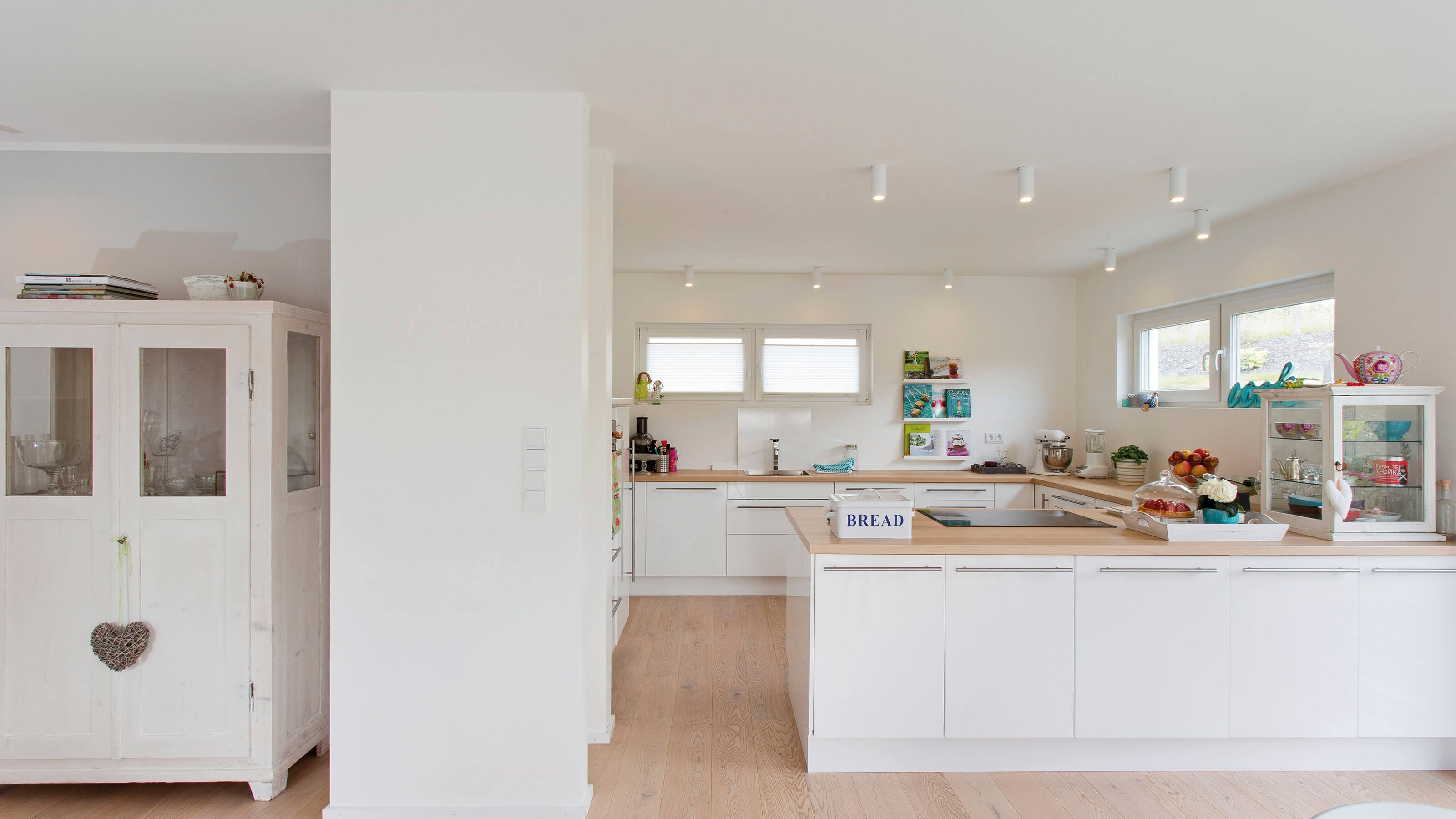 Daheim ist es am Schönsten - Der offene Wohn-, Ess- und Kochbereich charakterisieren das Haus. Hier findet sich genug Platz um das Leben gemeinsam zu genießen. Die großen Fenster und Fenstertüren sorgen für ausreichend natürlich Lichteinstrahlung und machen den Raum schön hell. Außerdem finden sich im Erdgeschoss der Hauswirtschaftsraum, sowie eine Speisekammer und ein WC. Im Dachgeschoss befindet sich ausreichend Platz für ein Arbeitszimmer (HomeOffice), ein Kinderzimmer einen Hauswirtschaftsraum ein Badezimmer und ein Schlafzimmer mit einer Ankleide und anschließendem großen Badezimmer. Der Schlaf- und Ankleidebereich wird durch eine Glasschiebetüre geschickt vom großen Wohlfühlbad getrennt. Die beiden zusätzlichen Räume können selbstverständlich auch als Gästezimmer oder Hobbyraum genutzt werden.