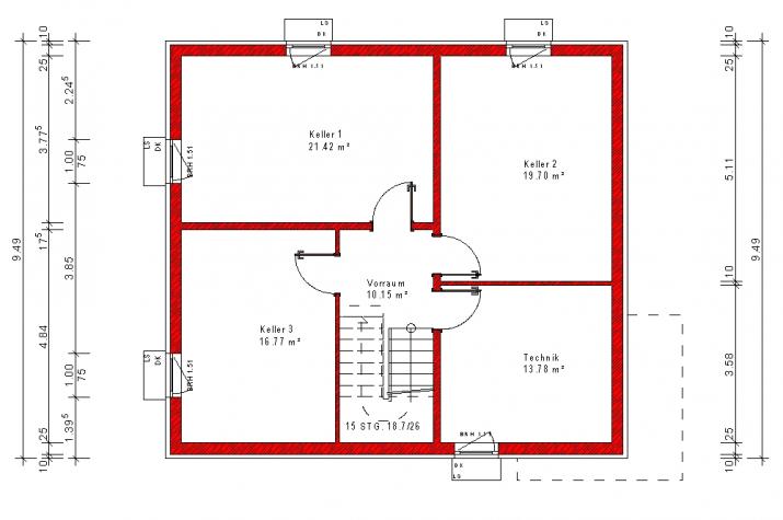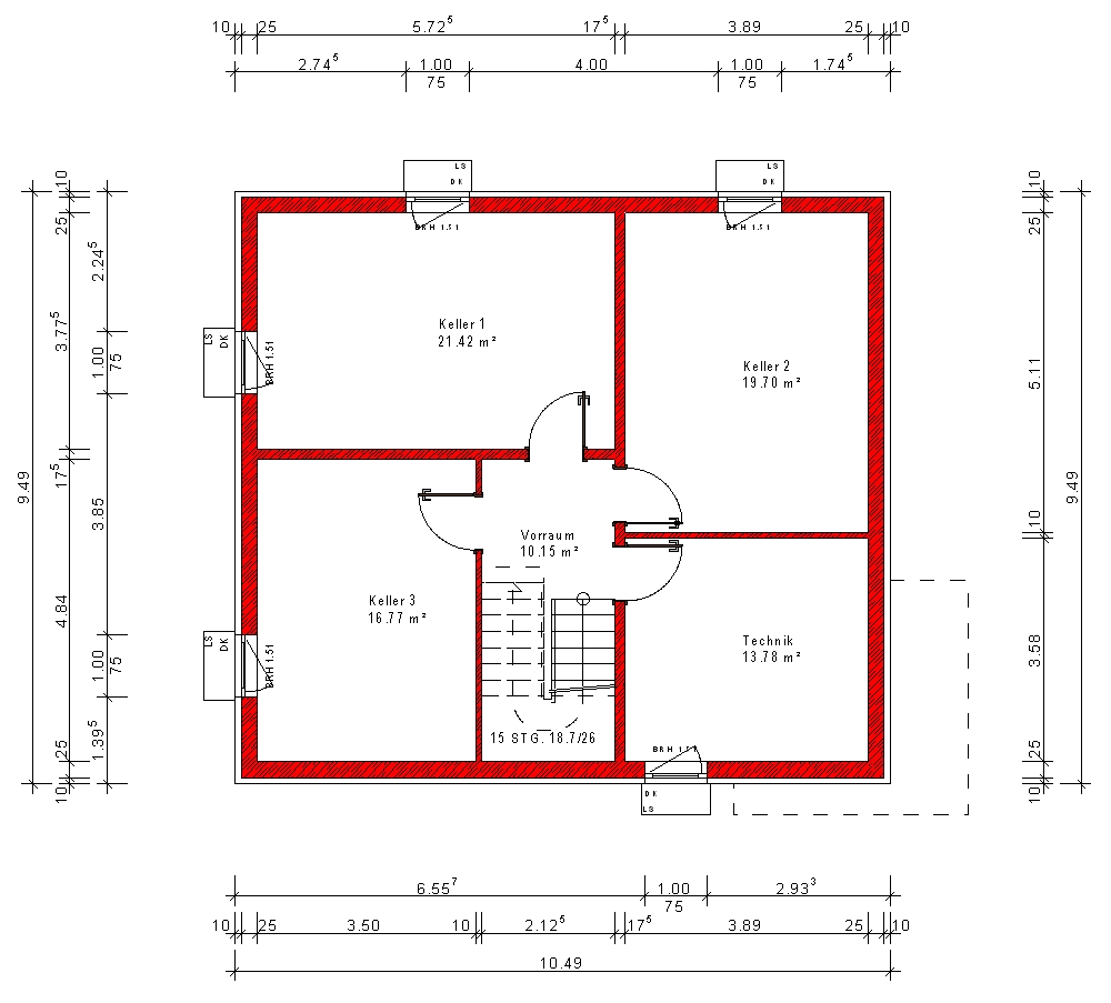 Blähtonwand von 17,5 cm bis 49 cm Dicke möglich