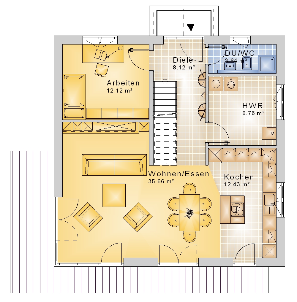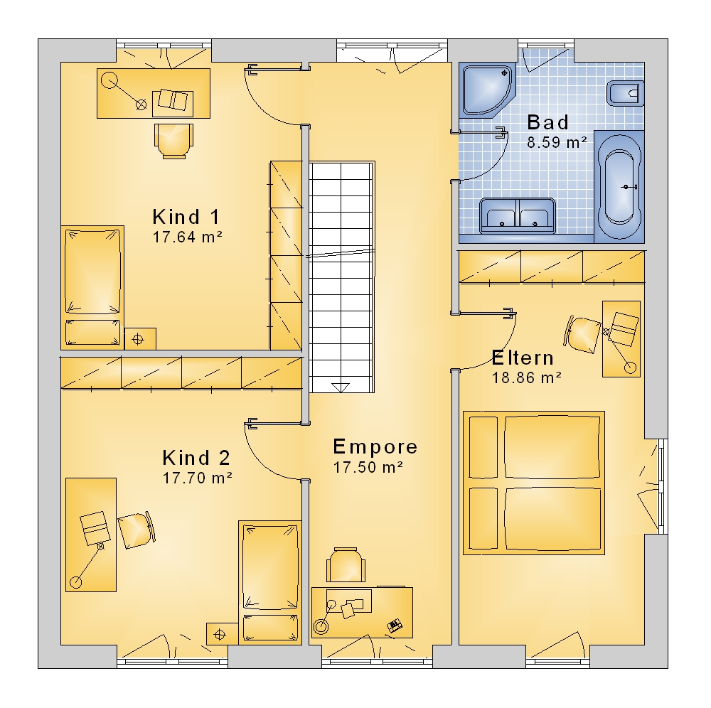 Auf zwei Vollgeschossen ermöglicht eine großzügige Raumaufteilung individuelle Gestaltung.