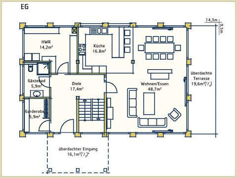 Der Glas-Skelettbau mit riesigen Fensterflächen und überdachtem Balkon ermöglicht einen atemberaubenden Panoramablick. Die Leichtigkeit und Offenheit setzt sich in der Wirkung der Innenräume nahtlos fort: Das raumübergreifende Wohnkonzept liefert freie Entfaltungsmöglichkeiten für Individualisten.