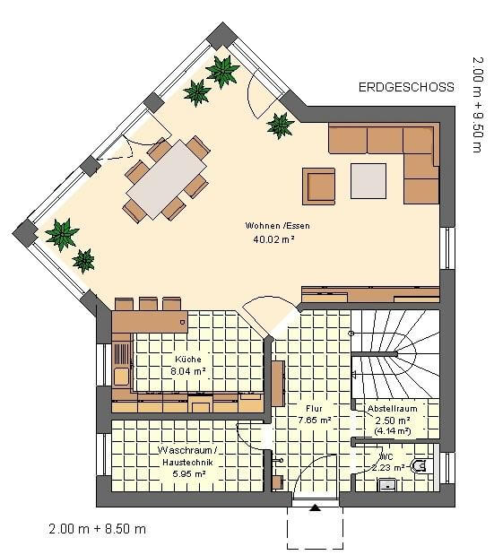 Das sehr beliebte und bereits vielmals gebaute Kowalski-Haus ANITA 160 beeindruckt durch den reizvoll geschnittenen Wohnraum mit dem verglasten Eckvorbau. Die Kombination der spitzeckigen Dachabschleppung mit dem schönen Balkon macht dieses Haus zweifelsfrei auch von außen zu einem echten Blickfang.