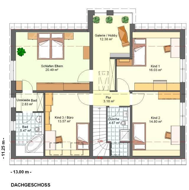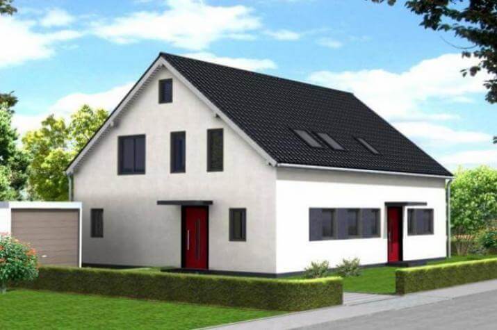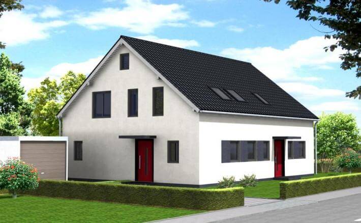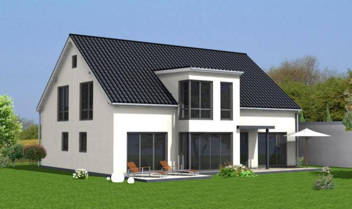 Das Haus Celine 285 bauen wir für Sie wahlweise als Fertighaus oder in Massivbauweise.