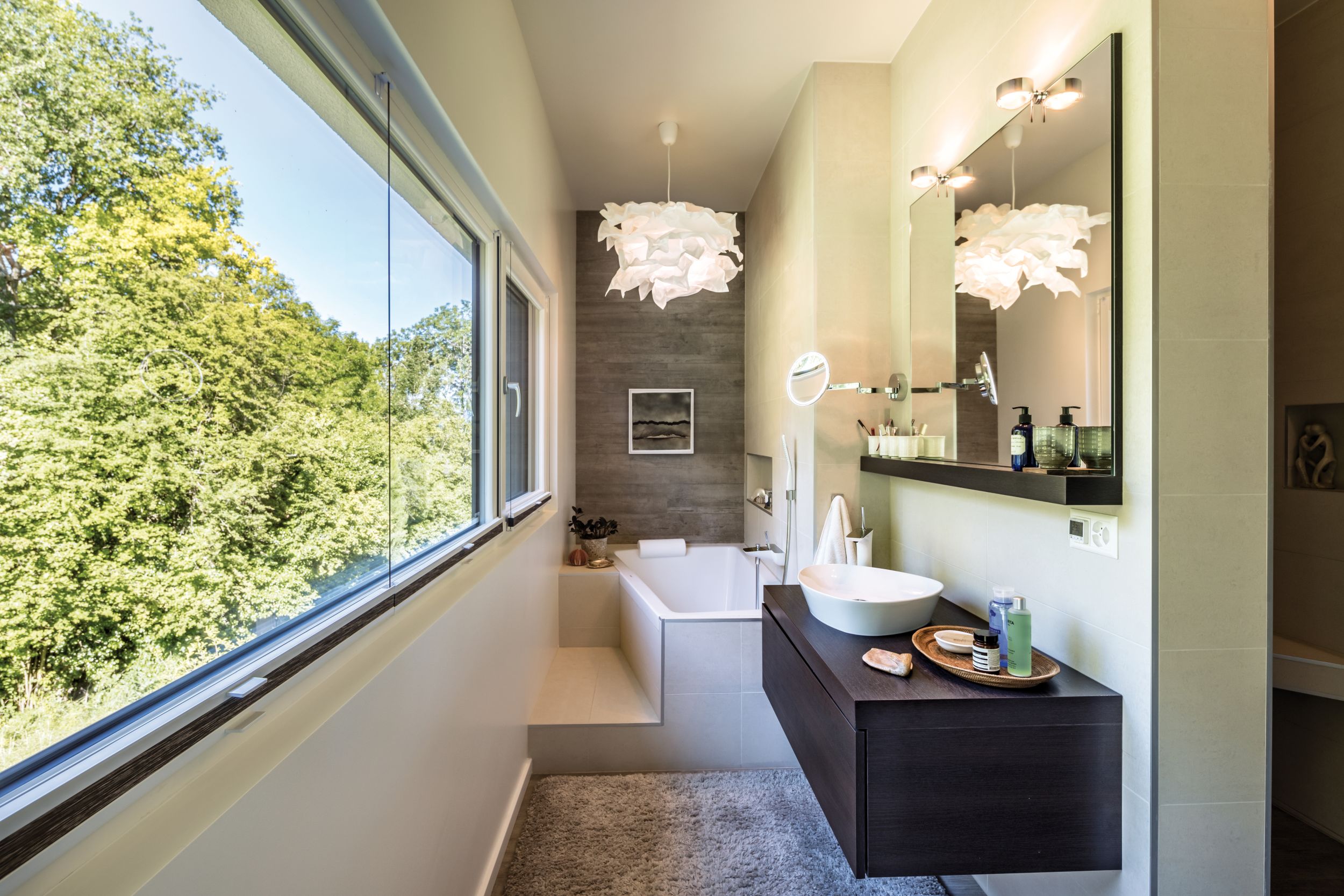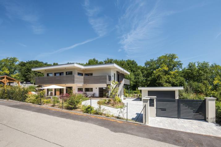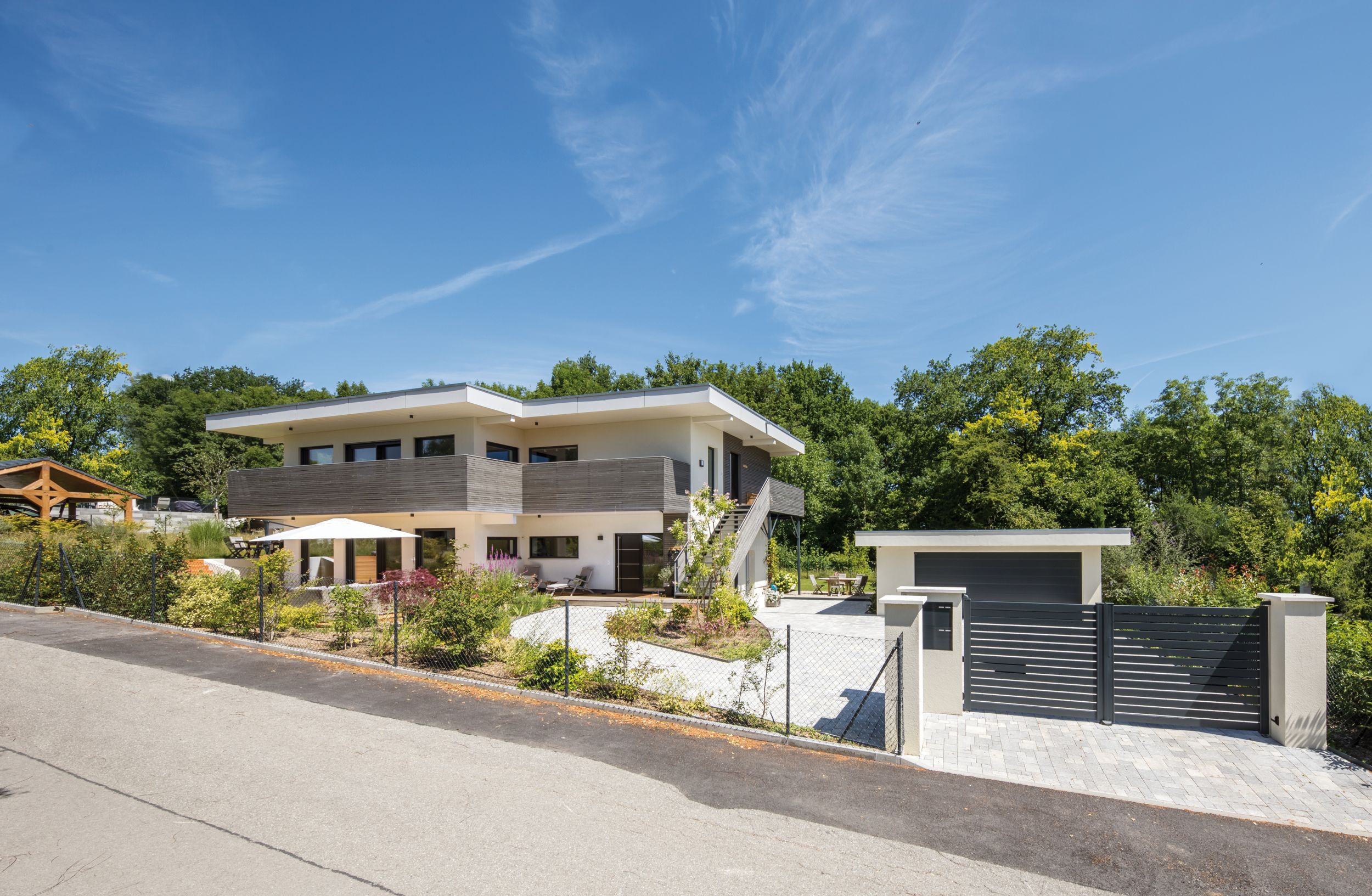 Wie man in der Planung eines Hauses ideal architektonischen Anspruch, die Gegebenheiten des Grundstücks und die Bedürfnisse der Bauherren miteinander in Einklang bringt, beweist das Vitalhaus Fabienne – wunderschön gelegen und umsäumt von altem Baumbestand auf einer Anhöhe unweit des Genfer Sees.
