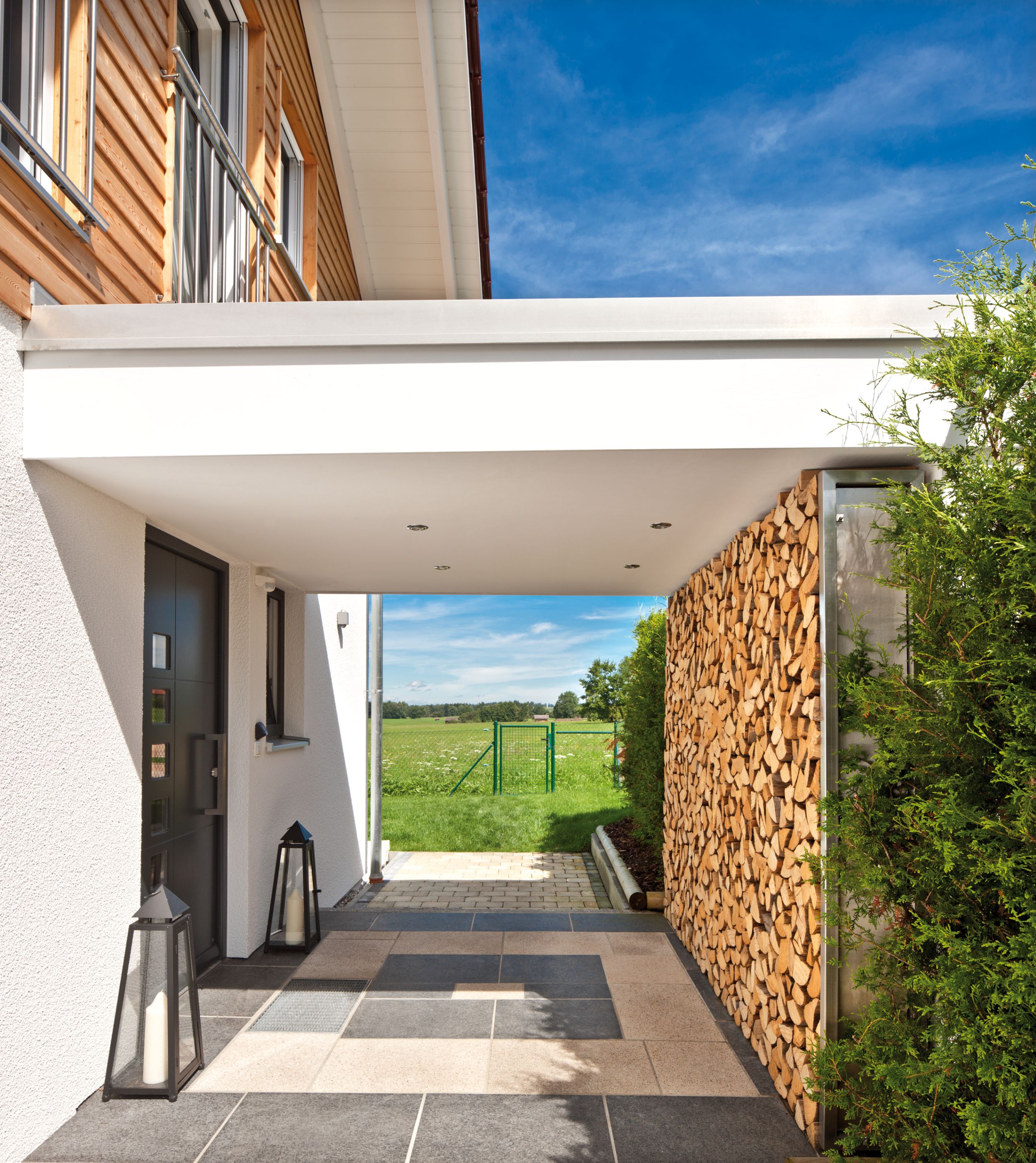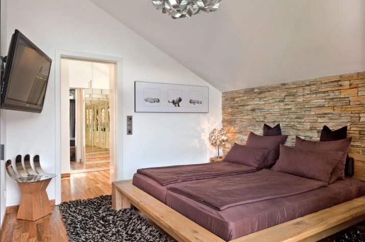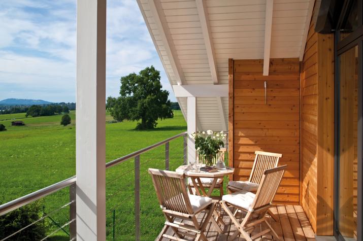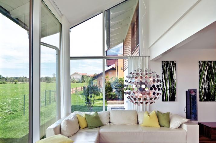 Ein Vitalhaus durch und durch - Die Inspiration für den gebauten Traum im Grünen lieferte kurioser Weise nicht der Hausbau, sondern der Objektbereich des Holzhausherstellers Regnauer aus Oberbayern. Als der Steuerberater die Regnauer-Ideen für Gewerbeimmobilien kennenlernte, sprang der Funke über. Gemeinsam mit seiner Lebensgefährtin entschied er sich, auch privat ein Haus von Regnauer zu realisieren. Dessen Vitalhauskonzept sprach die beruflich stark beanspruchte Bauherrenfamilie an. Sie wünschte sich einen wohltuenden Rückzugsort aus dem stressigen Alltag eines Selbständigen, einen Platz zum Durchatmen und Entspannen.