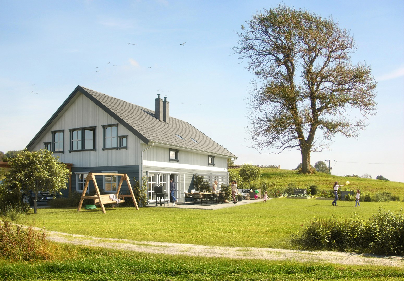 Das perfekte Generationshaus für junge Familien, die mit ihren Eltern unter einem Dach, aber nicht in einer Wohnung wohnen wollen. Durch die praktische Raumaufteilung bieten beide Haushälften große Möglichkeiten.