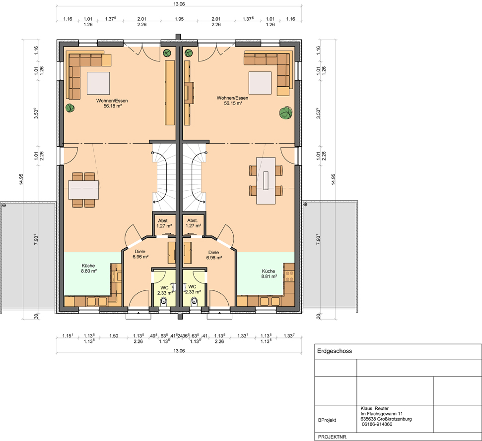 Dies sind nur beispielhafte Entwurfsplanungen und werden in einem persönlichen Projektgespräch nach Ihren Wünschen, den grundstücksbezogenen Gegebenheiten und den planungsrechtlichenVorgaben des Bebauungsplans angepasst!