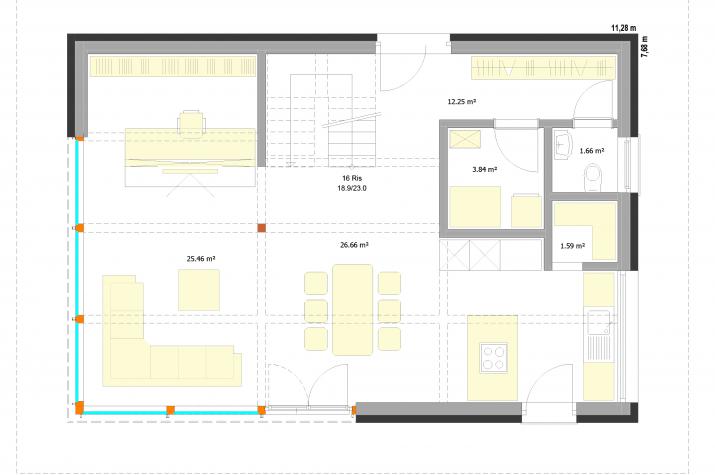 Unser "Vita Prima 134" ist sowohl auf Bodenplatte wie auch auf Keller zu realisieren. Darüber hinaus sind weitere Bauteile wie Balkon, Gaube oder Trauferker problemlos zu integrieren.