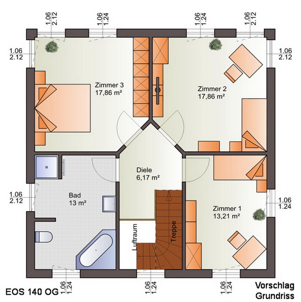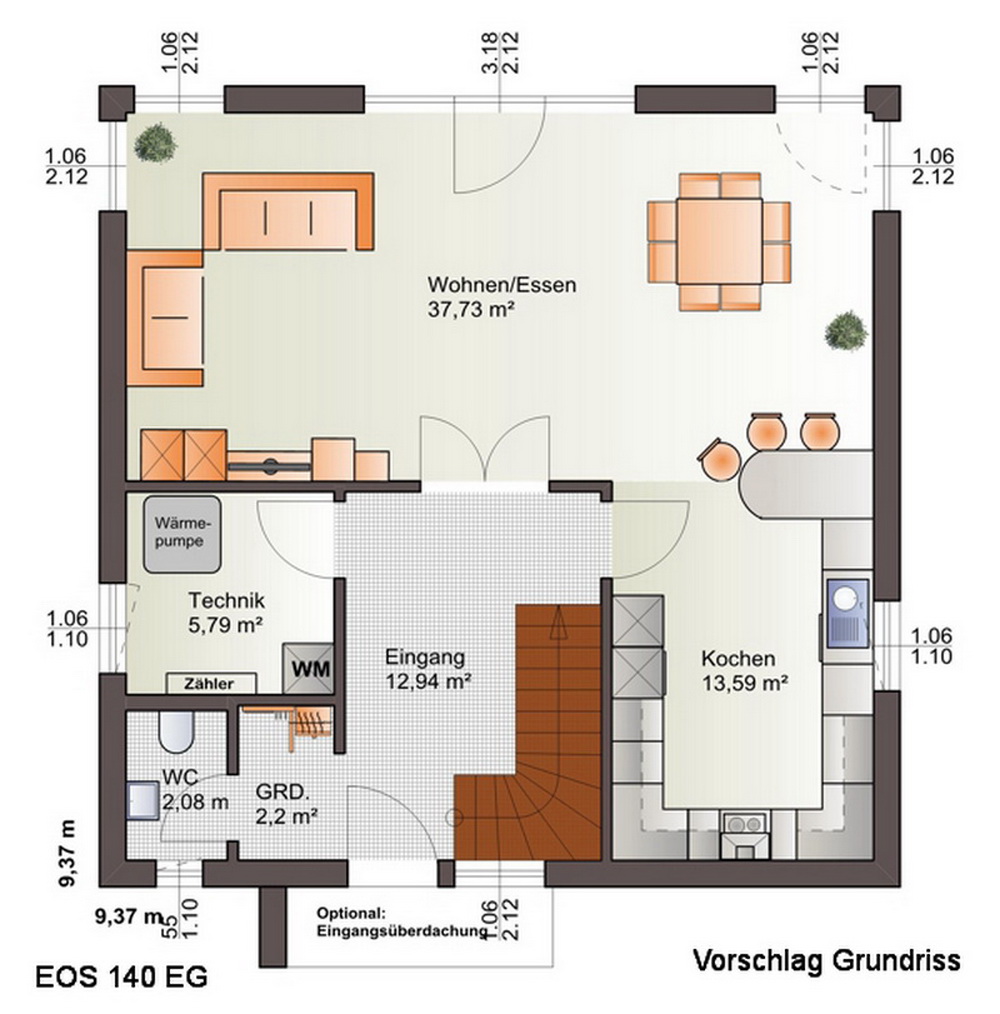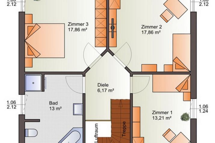 Das Haus ist ein frei geplantes Wohnobjekt mit zwei Vollgeschoßen und mit Balkon im Obergeschoß. Es kann auf Bodenplatte oder auf einem Wohnkeller errichtet werden. Mit Wohnkeller (2,50 m lichte Höhe) und einer Wohnfläche von zusätzlichen 50 m² zzgl. Haustechnikraum (7 m²) und Abstellkeller (13m²) sowie entsprechender Ausstattung (Fußbodenheizung, Lüftungsanlage, Innenausbau mit Estrich, Spachtel- und Malerarbeiten, Fenstern...) kann insgesamt eine Wohnfläche von ca. 195 m² (UG-EG-OG) realisiert werden. In dieser Konfiguration ist auch eine Einliegerwohnung und somit eine zweite Wohneinheit problemlos möglich. Dieses Haus entspricht meinem eigenen Wohnhaus und beinhaltet 2 Wohneinheiten - davon die Hauptwohnung im EG und UG sowie die Einliegerwohnung im kompletten OG inkl. Balkon mit 72,5 m² (Wohnungseingangstür, Badezimmer, Schlafzimmer, Schrankzimmer, Wohnzimmer, Küche und zusätzlich eine komplette zweite Toilette sowie einem Balkon mit 5 m² Nutzfläche. Der Zugang ins OG kann intern erfolgen oder auch mit einer extern angebrachten eigenen Außentreppe und eine Hauseingangstür.
