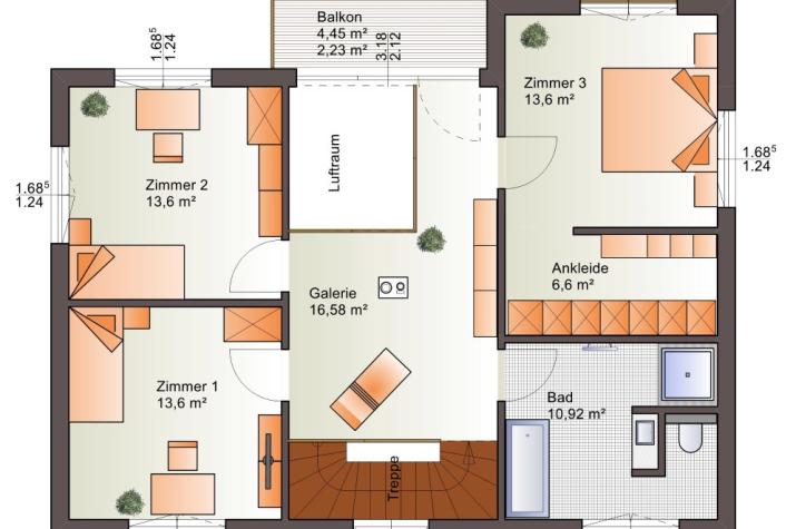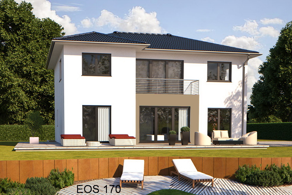 Das Haus ist ein frei geplantes Wohnobjekt mit zwei Vollgeschoßen und mit Balkon im Obergeschoß. Es kann auf Bodenplatte oder auf einem Wohnkeller errichtet werden. Mit Wohnkeller (2,50 m lichte Höhe) und einer Wohnfläche von zusätzlichen 70 m² zzgl. Haustechnikraum (8 m²) und Abstellkeller (17 m²) sowie entsprechender Ausstattung (Fußbodenheizung, Lüftungsanlage, Innenausbau mit Estrich, Spachtel- und Malerarbeiten, Fenstern...) kann insgesamt eine Wohn-/Nutzfläche von ca. 265 m² (UG-EG-OG) realisiert werden. In dieser Konfiguration ist auch eine Einliegerwohnung und somit eine zweite Wohneinheit durchaus möglich. Dieses Haus entspricht einem Wohnhaus für Bauherren mit einer fünfköpfigen Familie. Je nach Grundstück kann die Planung natürlich angepasst werden. Sollte Ihr Grundstück eben sein, könnte auch auf Bodenplatte gebaut und eine Garage mit einer Unterkellerung als Staukeller günstiger als ein Vollkeller sein. Gerne berate ich Sie auch dazu.