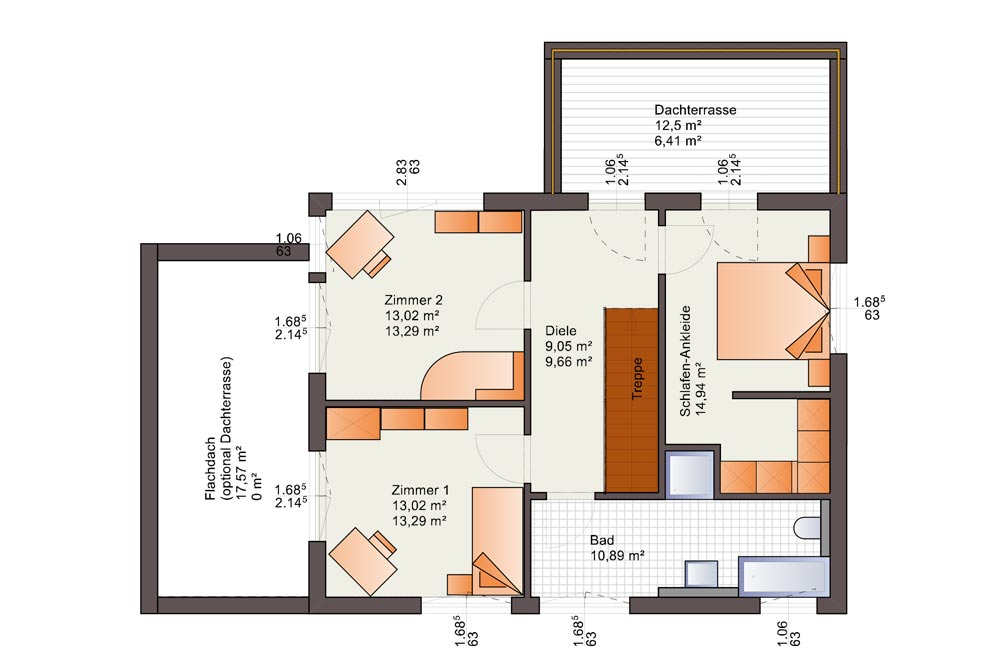 Grundsätzlich gilt auch bei diesem Projekt die Möglichkeit der absolut freien und individuellen Planung im Zusammenhang mit der Hausplanung/Bauantrag ohne Planungsmehrkosten. Damit lassen sich alle persönlichen Vorstellungen und Wünsche einbringen und umsetzen, um ein ganz individuell gestaltetes Wohnhaus zu schaffen.