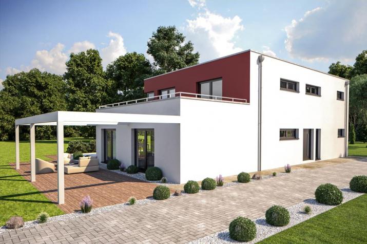 In dieser eleganten, modernen und beeindruckenden Bauhausvilla wurde ein sehr anspruchsvolles Wohnkonzept umgesetzt. Hier wird Wohnen zum außergewöhnlichen Erlebnis, das Sie jeden Tag in jeglicher Form genießen werden. Der Wohn-/Essbereich inkl. der offenen Küche und dem Erker mit Dachterrasse umfasst über 66,60 m² und stellt so den unbestrittenen Mittelpunkt der Bauhausvilla dar. Im Erdgeschoß sind sowohl die Haustechnik wie auch ein Abstellraum/Vorratsraum untergebracht. Ebenso ein Raum, der als Büro/Homeoffice/Gästezimmer genutzt werden könnte. Das Obergeschoß beherbergt drei große Schlafzimmer - eines davon mit Ankleidebereich und einen direkten Zugang zur über 12 m² großen Dachterrasse, sowie das große Familienbad mit ca. 11 m². Optional kann auch nach eine zweite Dachterrasse mit über 17 m² realisiert werden.