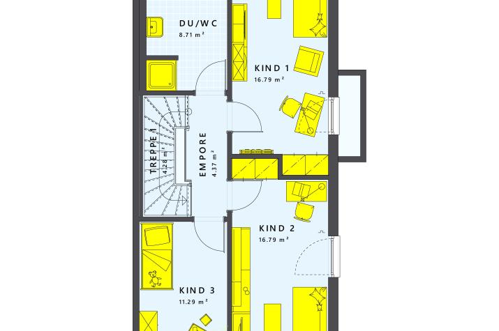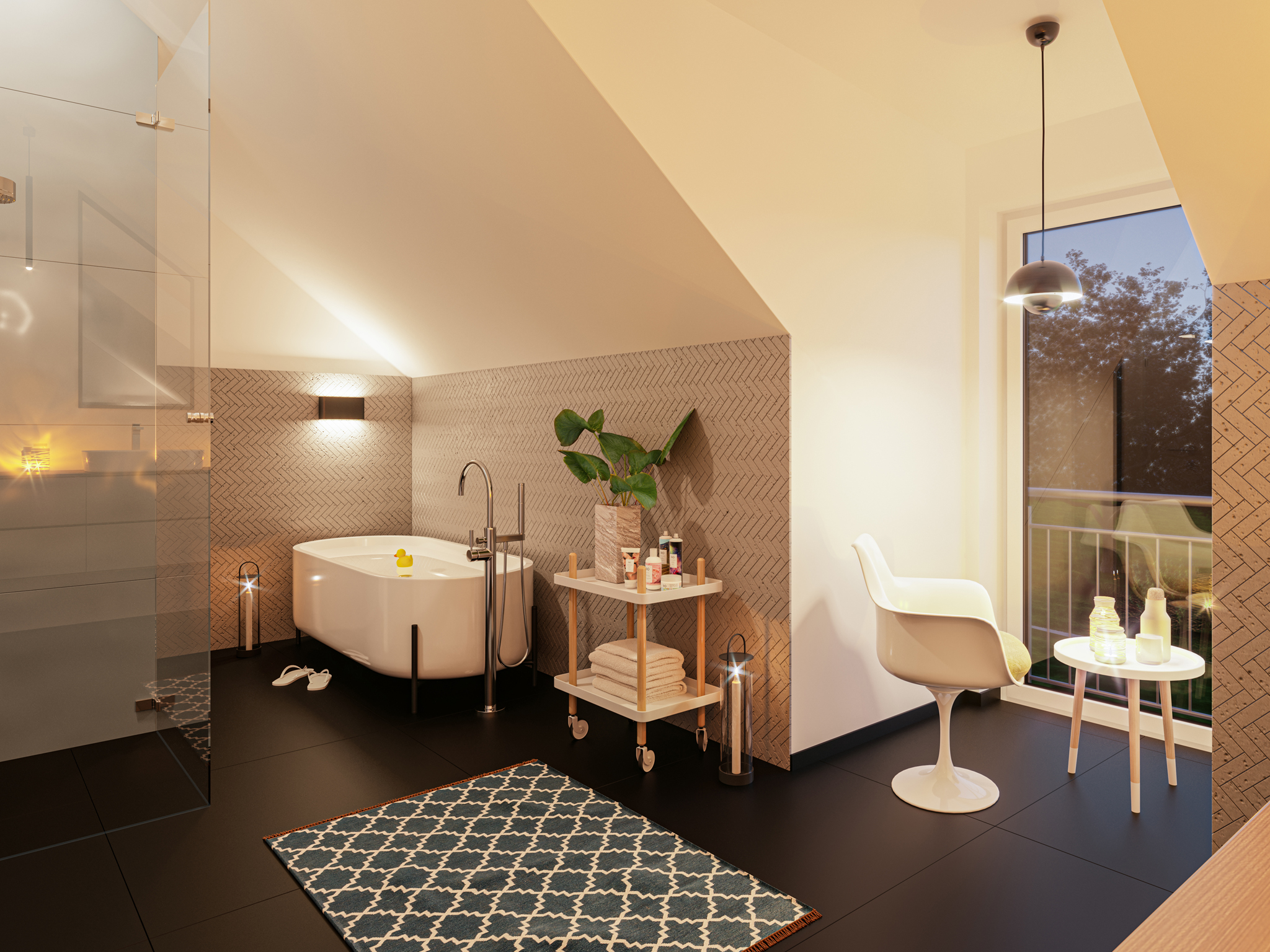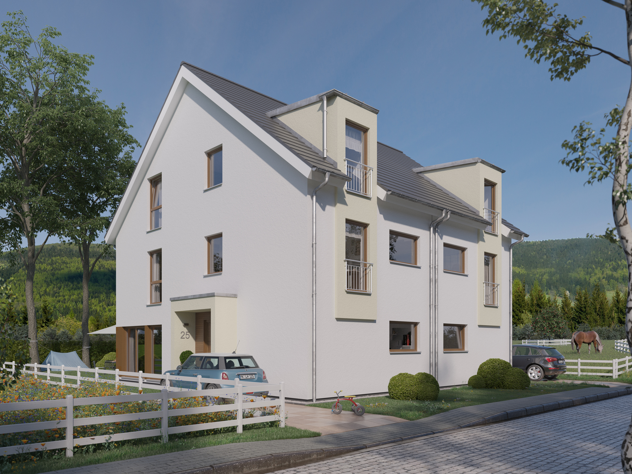 Das kompakte Doppelhaus SOLUTION 125 bietet eine Vielzahl an Optionen, euch euer ganz individuelles Traumhaus zu gestalten. Die verschiedenen Doppelhaus-Entwürfe zeigen auf, wie breit gefächert die Auswahlmöglichkeiten optisch wie auch funktional sind. Variante 4 präsentiert sich mit den filigranen Zwerchgiebeln als Blickfang weltoffen und mit ganz viel Platz auch für größere Familien. Die Grundrisse des 2,5-Geschossers sind schmal gehalten und für den Einsatz auf kompakten Grundstücken in urbanen Wohngebieten optimiert – mit einem fantastischen Raumangebot im Erdgeschoss, darüber dem Kinderreich mit drei Zimmern plus Bad und dem luxuriösen Elternbereich unterm Dach.