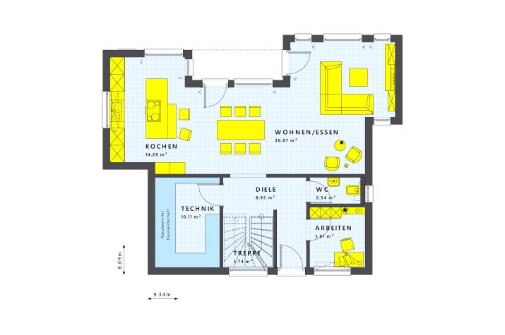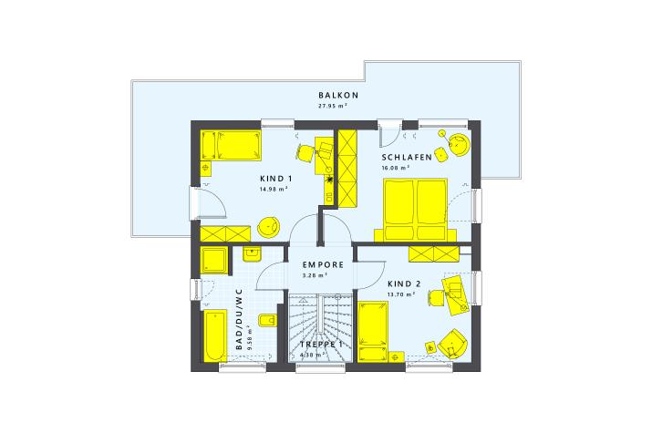 SUNSHINE 125 macht in verschiedenen Architekturvarianten vom pfiffigen Satteldachhaus bis zur zweigeschossigen Stadtvilla eine prima Figur. Im offenen Koch-Ess-Wohnbereich wird gelebt und gelacht – und ganz sicher fühlen sich hier auch deine Gäste rundherum wohl. Viel Freiraum für die persönliche Lebensart bietet in dem tollen Familienhaus auch das obere Geschoss. Die Eltern gönnen sich ein Schlafzimmer mit separater Ankleide und Wellness-Bad. Oder zwei Kinder genießen hier ihr eigenes Reich zum Spielen, Lernen und Schlafen. Bestimmt wird es dir gefallen, mit vielfältigen Architektur-Accessoires dein ganz persönliches Eigenheim zu gestalten.