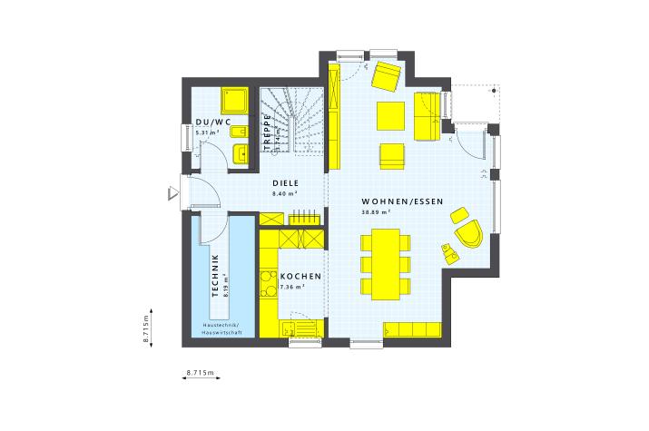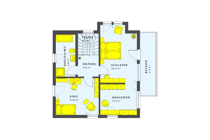 Das SUNSHINE 126 bietet dir alles, was du dir von den eigenen vier Wänden wünschst. Von außen bestechen die attraktive Architektur und das schicke Design und im Inneren die clevere und großzügige Raumgestaltung. Damit alles deinem Geschmack und deinen Wünschen entspricht, kannst du den kompletten Look und die Größe deines neuen Zuhauses ganz individuell anpassen. Der clever gestaltete Grundriss im Erd- und im Obergeschoss bietet zahlreiche Highlights wie die zentrale Küche und die große Ankleide. Damit erwartet euch im Erdgeschoss ein phantastisches Raumkonzept, in dem ihr das aktive Familienleben genießen könnt. Und im Obergeschoss kommt ihr in den Genuss des Wellness-Bades und der großzügigen Schlafräume.
