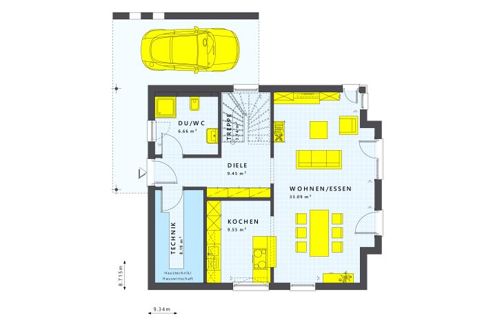 SUNSHINE 136 – das ist phantastisches Wohnen in einem Haus, bei dem wirklich alles passt! Die moderne und vielfältige Architektur lässt sich den unterschiedlichsten Geschmäckern und Bedürfnissen anpassen. Im Inneren fasziniert die sehr gelungene Raumaufteilung, die du mit zahlreichen Architektur-Bauteilen weiter individualisieren kannst. SUNSHINE 136 bietet dir im Erd- und Obergeschoss eine besonders ausgereifte Raumaufteilung mit vielen cleveren Details. Das Erdgeschoss mit zentraler Küche und einem großen Wohnzimmer oder alternativ dem separaten Büro ist der Lebensmittelpunkt für deine Familie. Den richtigen Platz zum Relaxen bieten euch die drei Schlafzimmer und das Wellness-Bad im Obergeschoss.