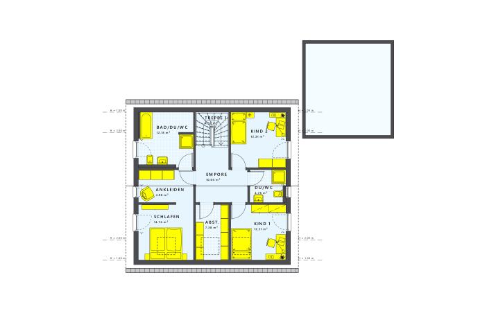 Und die Krönung: Das Dach ganz nach deinem Geschmack als Satteldach, Walmdach oder Flachdach. Du entscheidest. Wichtiger ist aber sowieso, was unter dem Dach ist. Und da machst du alles so, dass du und jeder in deiner Familie sich wohlfühlt. Denn jeder hat den Platz, den er braucht: Ein offener Gemeinschaftsbereich im Erdgeschoss. Ruhe- und Rückzugszonen oben. Dazu ein wenig Extra-Platz variabel als drittes Kinderzimmer, Büro, Gästezimmer oder Abstellraum. Es ist dein Zuhause. Mach es so, wie du willst.
