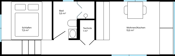 LOVT eignet sich für 1-2 Personen zum dauerhaften Leben und kein bei Bedarf um ein 10,5 qm großes Modul erweitert werden. Auch als Ferienhaus und in der Vermietung ist LOVT sehr beliebt!