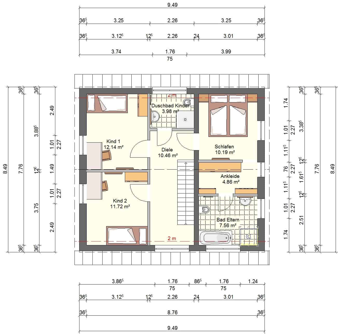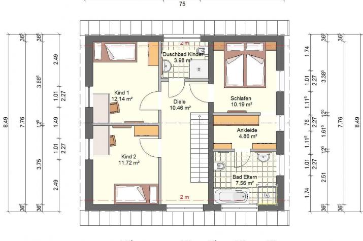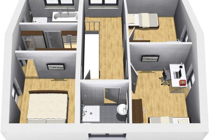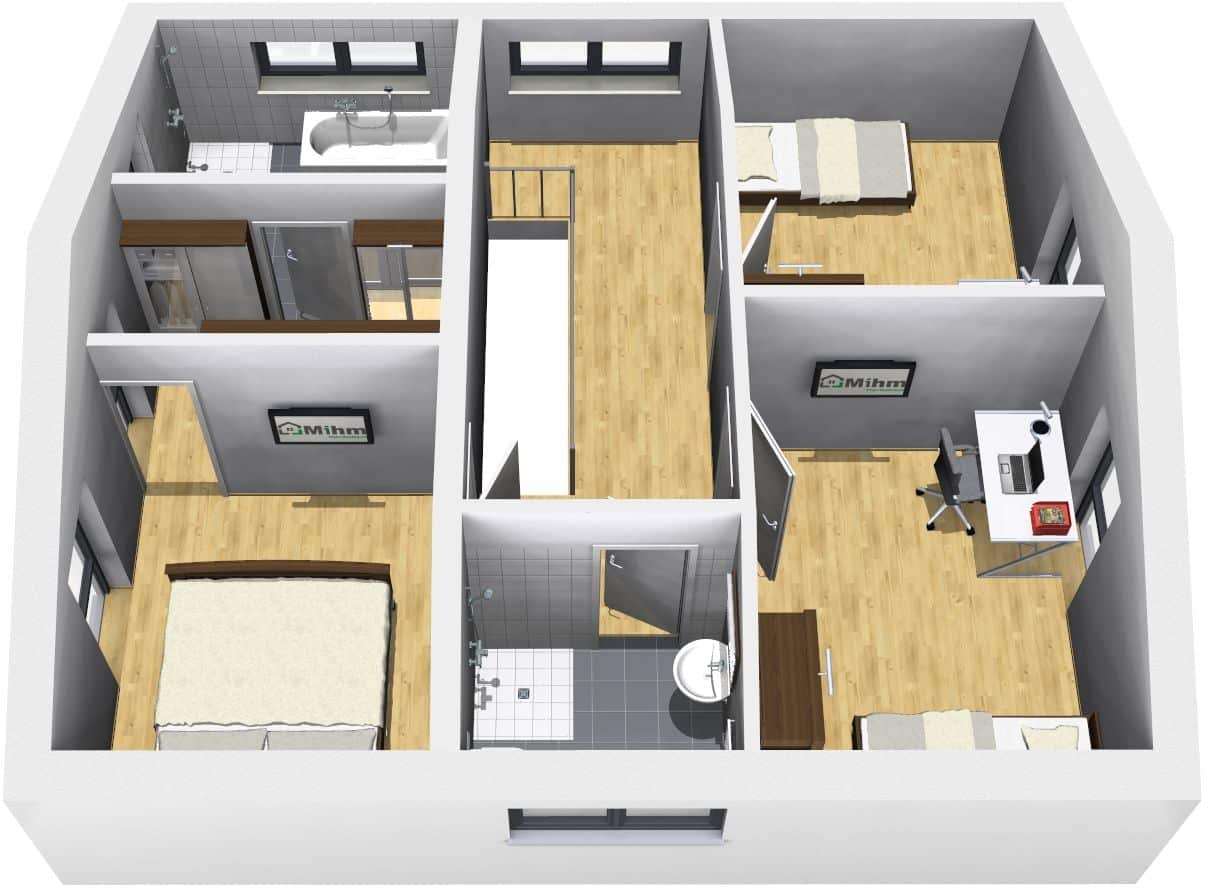 Mit dem Haustyp Klassik 12.62 hat man mit dem großen Wohn-und Essbereich und der angrenzenden offenen Küche im Erdgeschoss eine schöne Raumaufteilung geschaffen. Das Dachgeschoss mit seinen zwei Kinderzimmern und dem Schlafzimmer mit Ankleide lässt keine Wünsche offen. Mit einem Festpreis und einer Bauzeitgarantie ist die Firma Mihm Thermobau in Buttlar der richtige Ansprechpartner für die Bauherren.