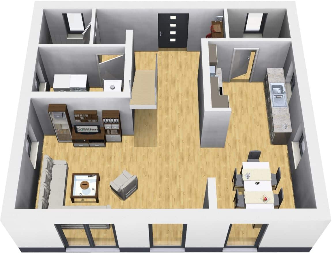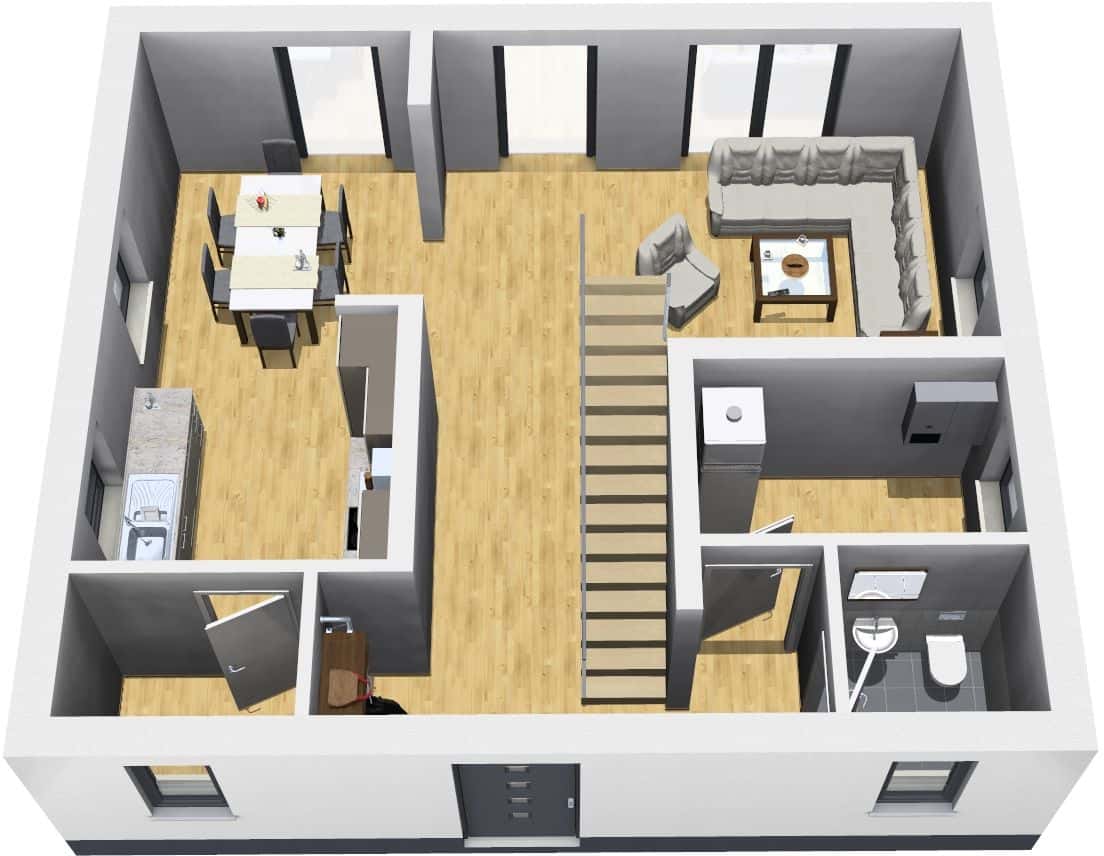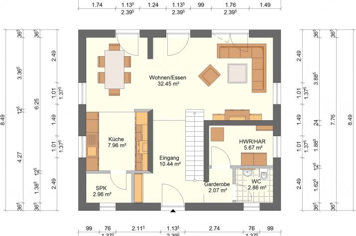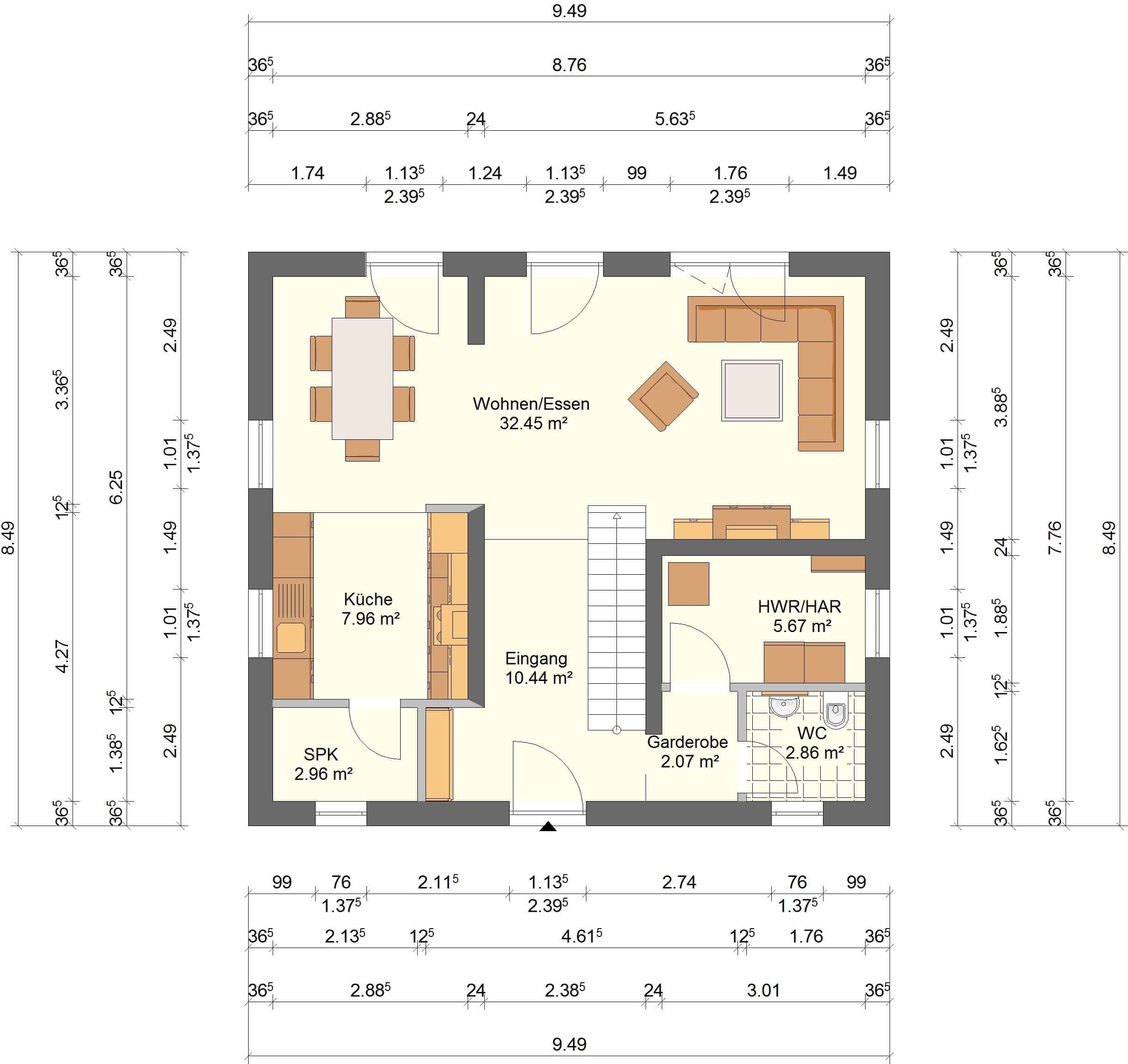Mit dem Haustyp Klassik 12.62 hat man mit dem großen Wohn-und Essbereich und der angrenzenden offenen Küche im Erdgeschoss eine schöne Raumaufteilung geschaffen. Das Dachgeschoss mit seinen zwei Kinderzimmern und dem Schlafzimmer mit Ankleide lässt keine Wünsche offen. Mit einem Festpreis und einer Bauzeitgarantie ist die Firma Mihm Thermobau in Buttlar der richtige Ansprechpartner für die Bauherren.