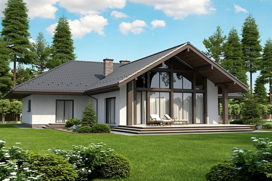Fassade verputzt oder Holzverschalung.